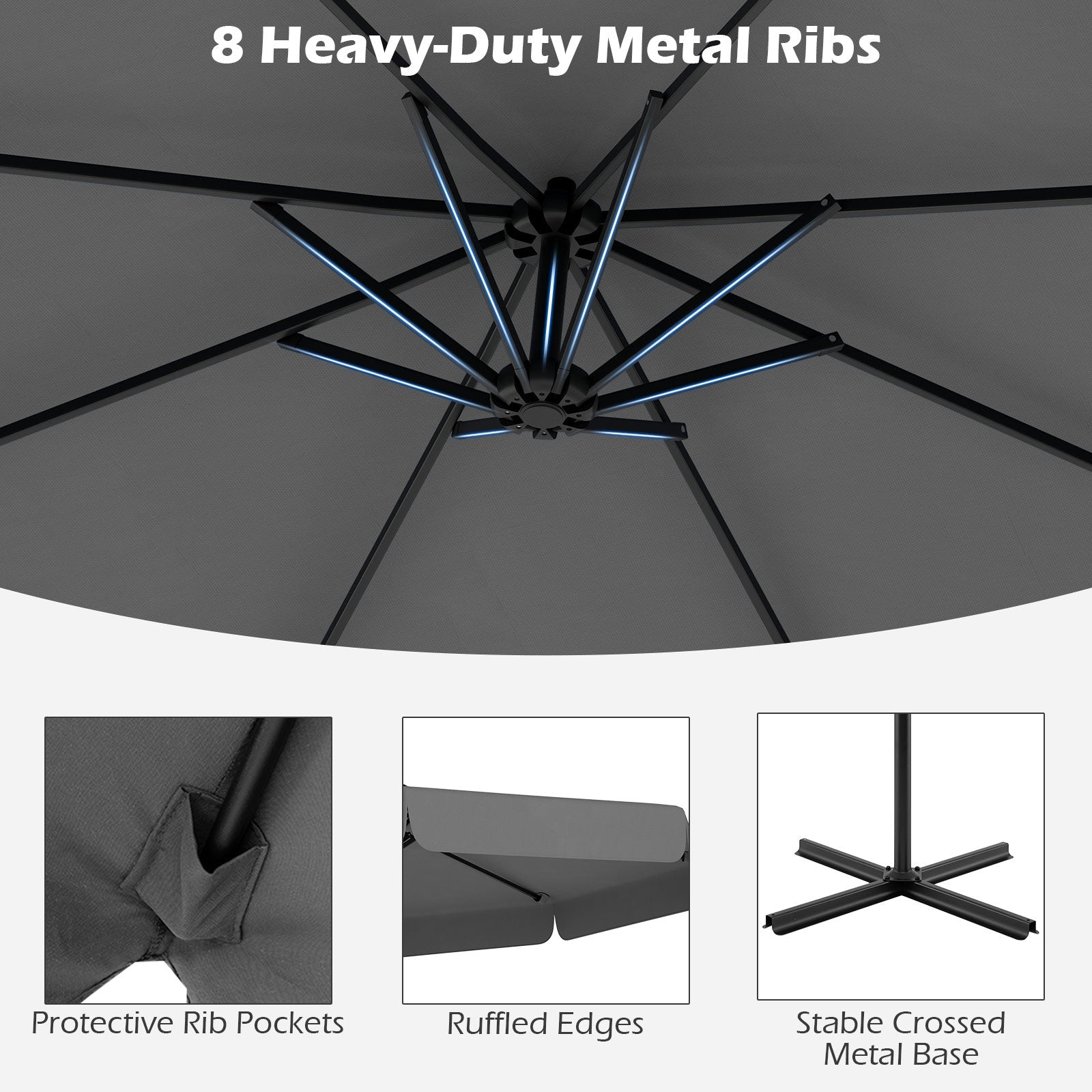 10 Feet Patio Cantilever Umbrella with Cover Tilt Adjustment and Ruffled Edge-Gray