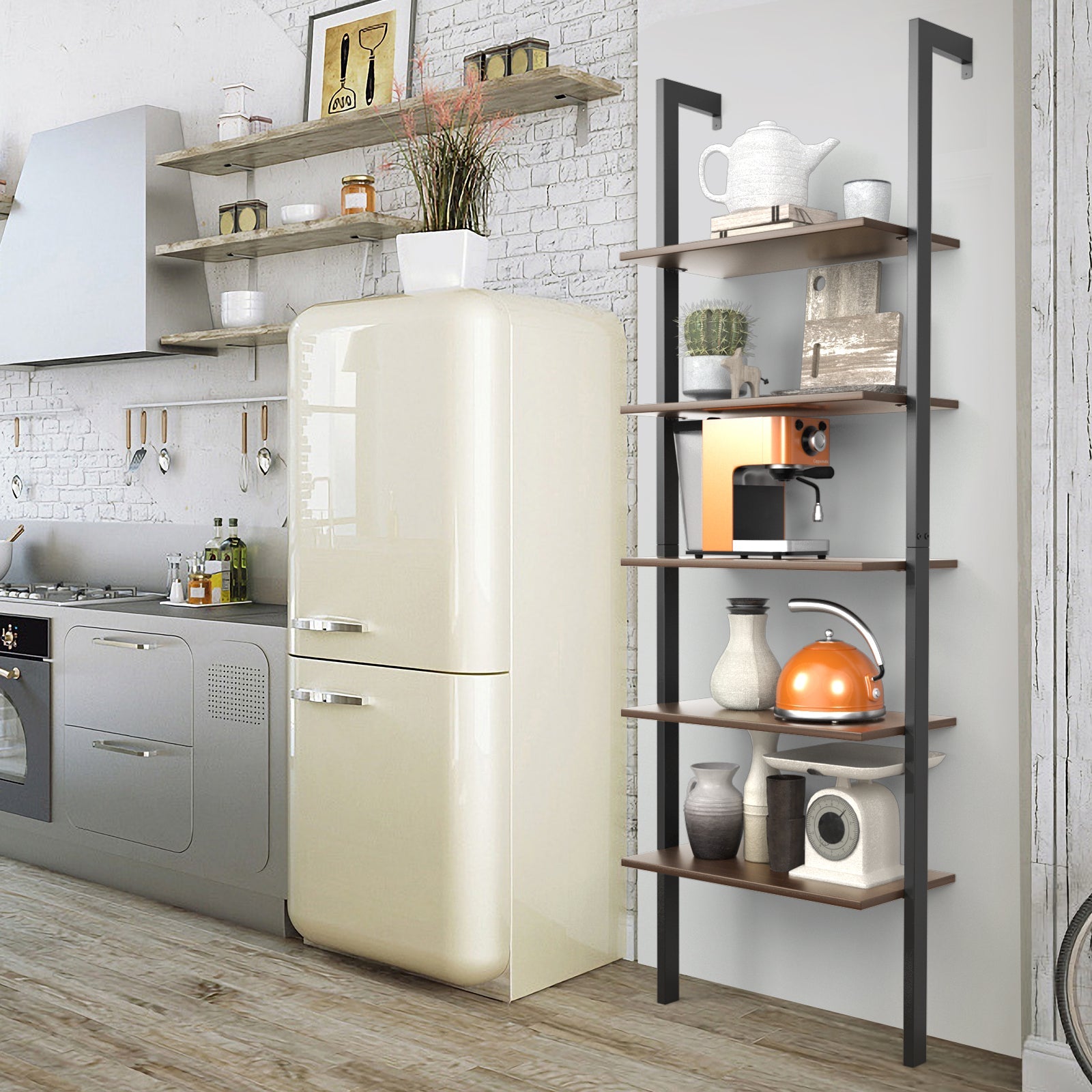 Estantería tipo escalera de 5 niveles con aspecto de madera y estructura de metal para el hogar - Negro