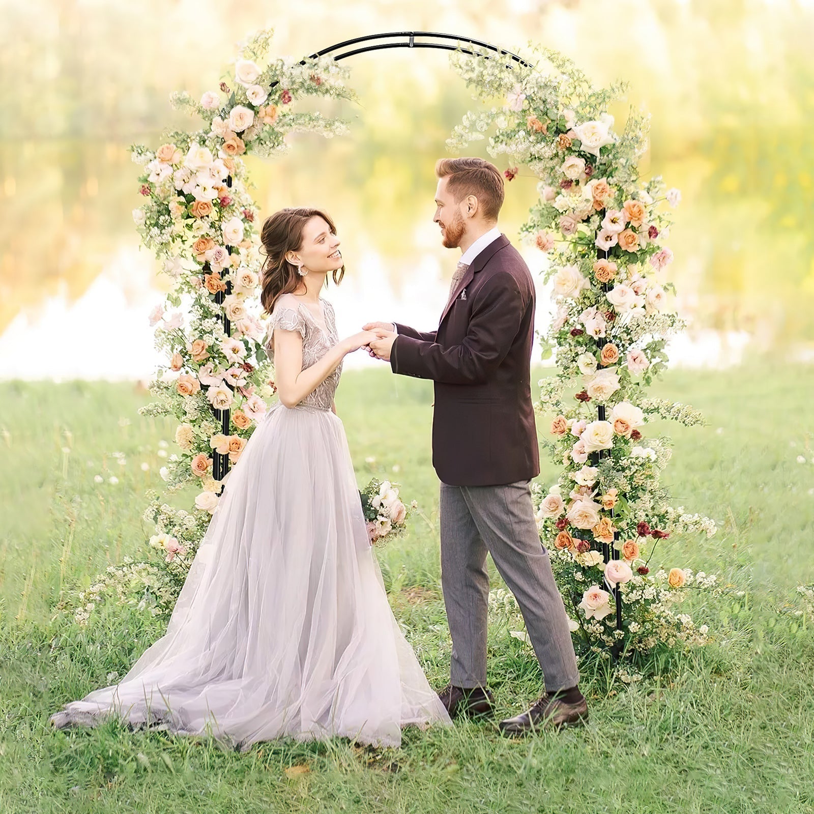 ● The high-strength metal frame is sturdy and durable enough not easy to crack● With anti-rust coating on the surface ensuring long-term outdoor use● Equipped with 4 metal ground stakes keeping good stability and wind resistance● With sturdy connection and sturdy metal tubes ensuring good sturdiness● Can be decorated with balloons LED lights flowers or tulle used in different scenes● The climbing trellises on both sides help plants climb on the garden arch well● With its elegant arch design enhance your garden with charming appeal