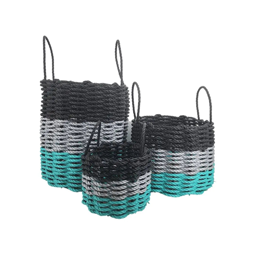 Authentic Maine Lobster Rope Storage Basket Teal, Gray, Black