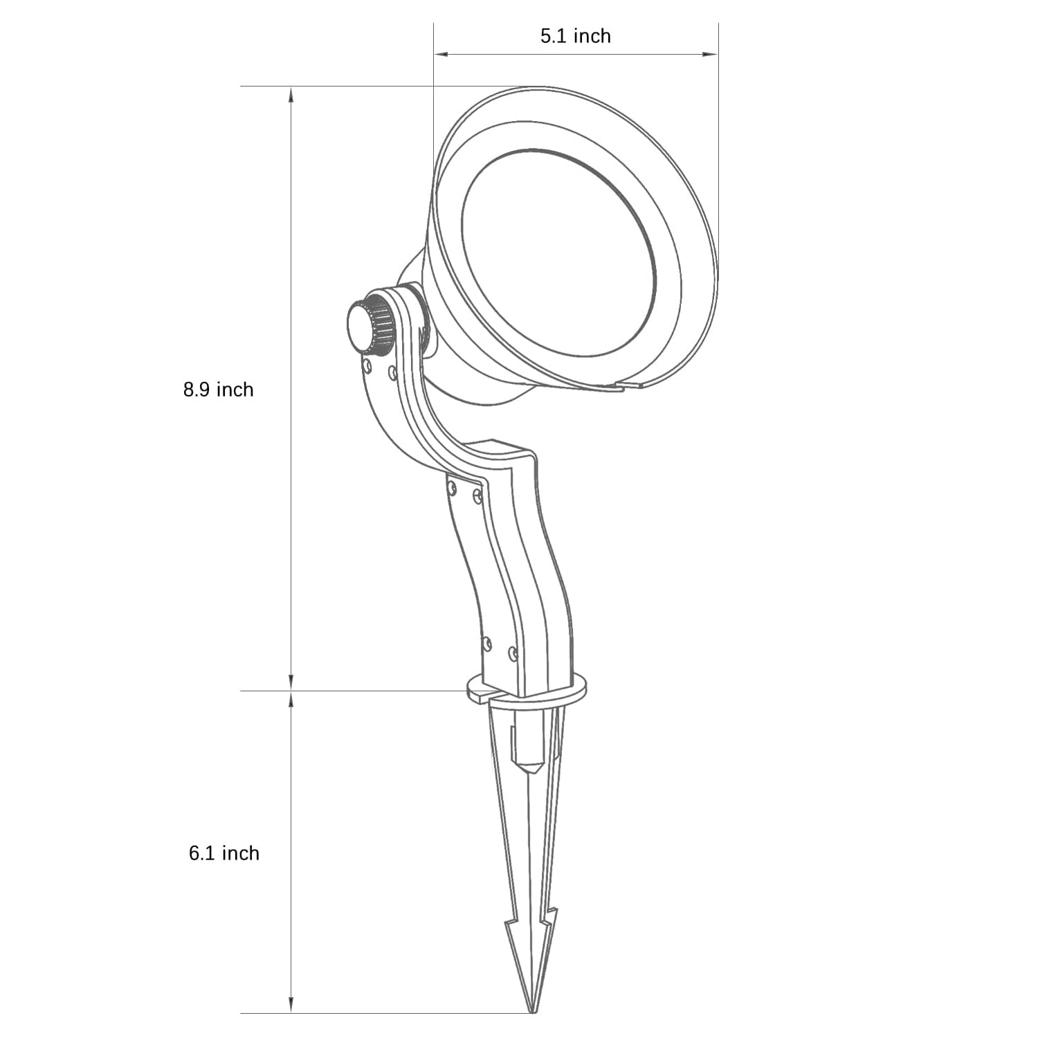 El LED de 7 W y 12 V proporciona una temperatura de color de 3 CCT, lo que significa que se puede ajustar entre 3000 K de blanco cálido, 4000 K de blanco natural y 5000 K de blanco frío, todo en un solo dispositivo y una luz de 500 lúmenes , por lo que puede disfrutar de características de iluminación ricas en multicolor. Tiene un cuerpo de aluminio fundido resistente con revestimiento negro que define su potente condición estructural. Tiene 3,75" de largo y 8,9" de alto y un diámetro de lente de 5,1". Este foco para árboles de luz alta tiene un amplio ángulo de haz de 65 grados. Con el dispositivo se incluye la estaca de plástico para clavarla en el suelo y lograr una sujeción fuerte.