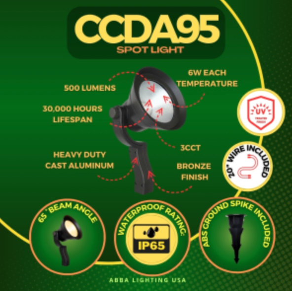 Una de las mejores opciones para iluminación exterior puntual es nuestro foco LED CCDA95 3CCT de 7 W de bajo voltaje para lograr la profundidad de color que buscas. Este foco direccional se puede utilizar durante todo el año, incluso en climas húmedos, ya que este producto es resistente al agua IP65 .