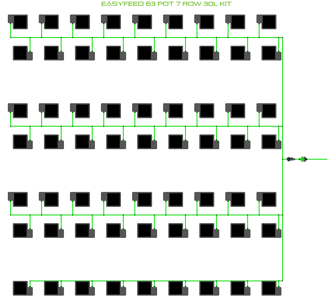 The ALIEN EasyFeed 63 Pot 7 Row Kit is available in 4 pot sizes. Easy to configure and assemble with advanced features and setup options including the ability to create an aisle in the middle of rows for complete plant access, grow 63 plants to perfection while bottom-feeding with scheduled dry-backs with this ALIEN EasyFeed Kit!