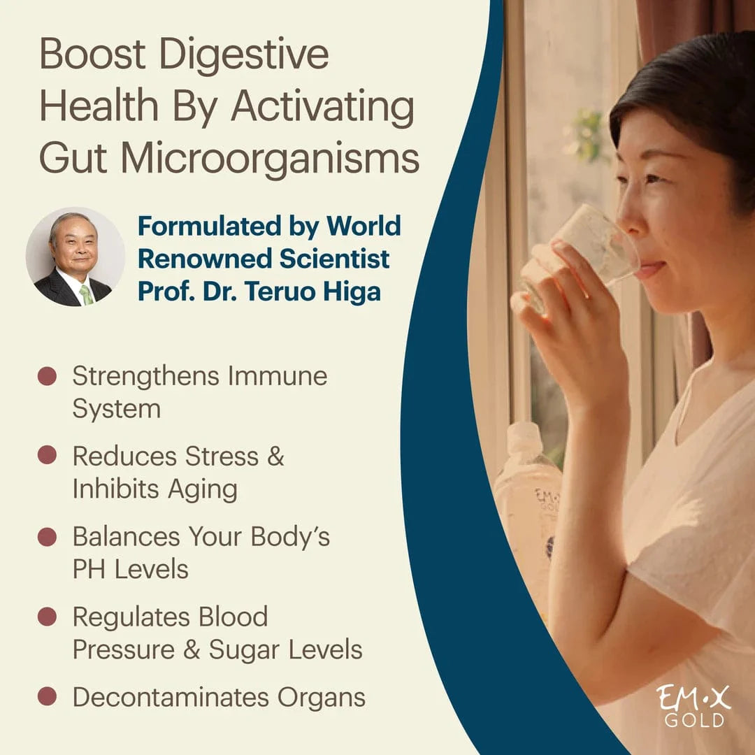 Descubre el increíble poder de la fermentación con EM-X GOLD, una bebida excepcional creada para revitalizar y reequilibrar tu cuerpo de forma completamente natural. Respaldado por profesionales médicos, EM-X Gold® potenciará la capacidad natural de curación de tu cuerpo y fortalecerá tu sistema inmunitario.