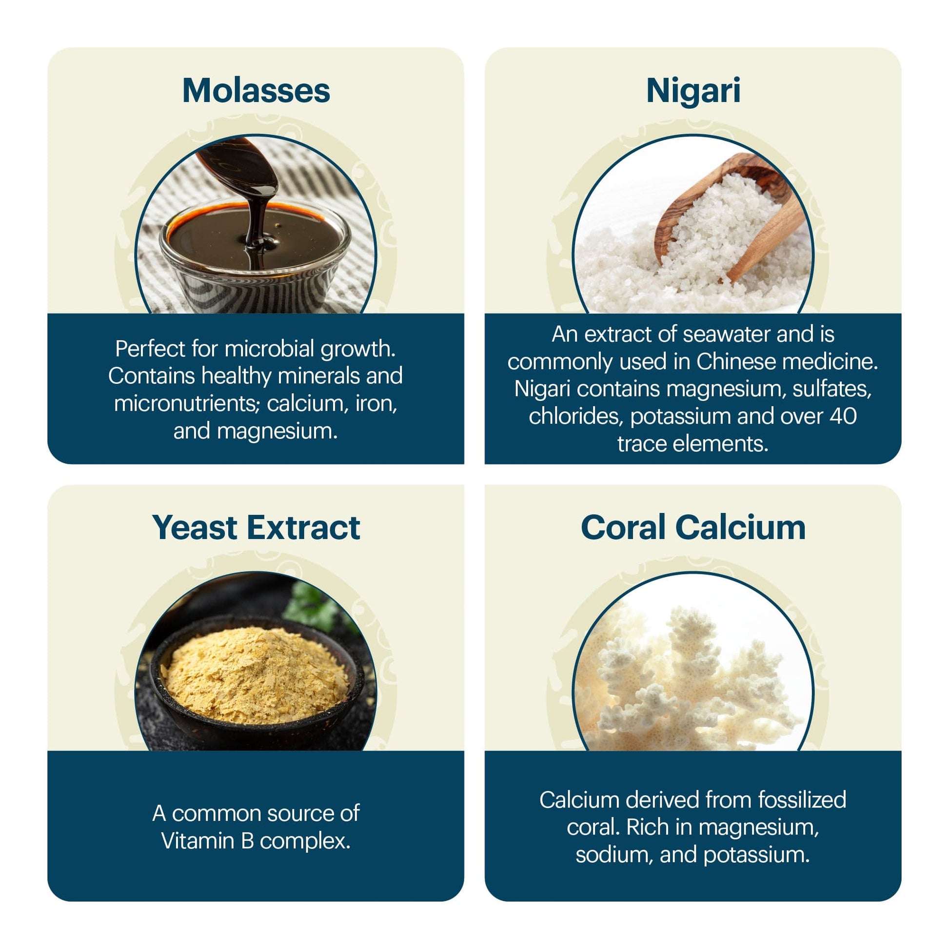 La mezcla patentada de metabolitos de fuentes naturales contiene antioxidantes altamente activos y 40 minerales vitales que estimulan el sistema digestivo e inmunológico y combaten los radicales libres y las enfermedades relacionadas con la edad.