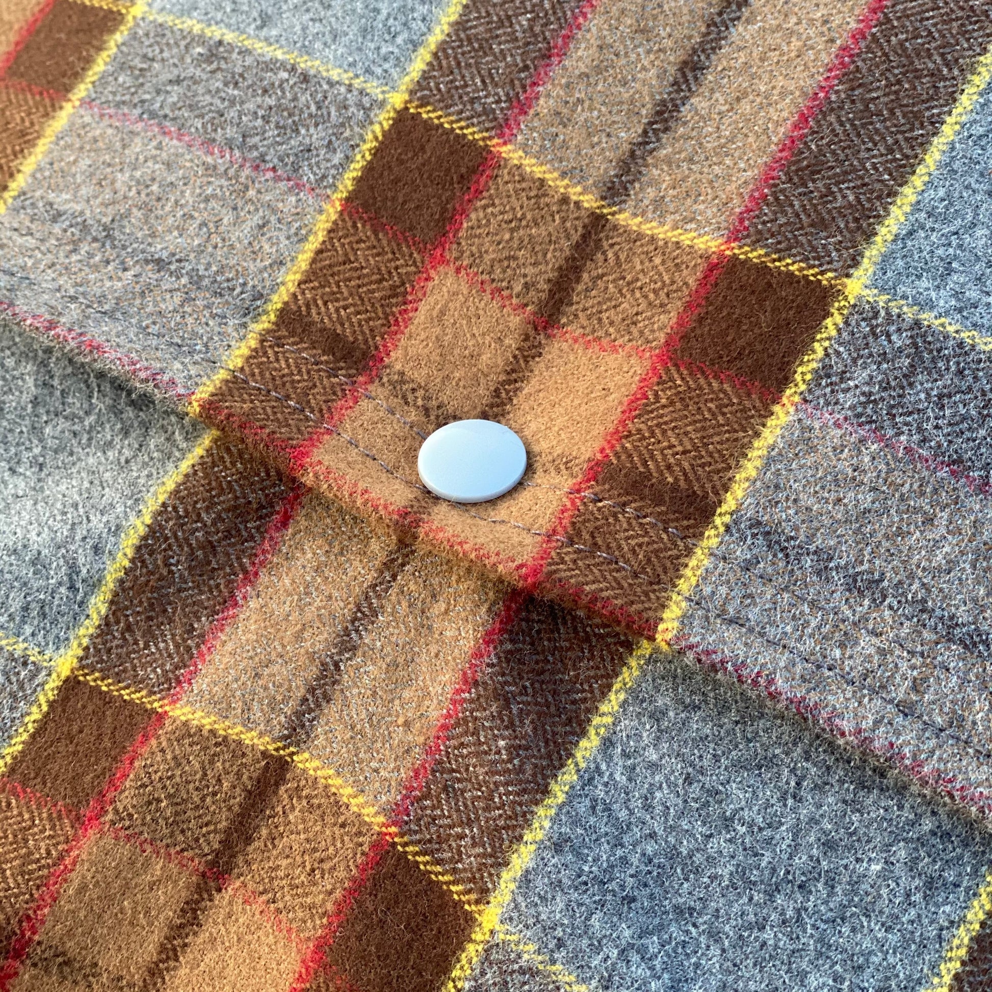 El patrón inspirado en el clan Fraser de Outlander tiene acentos de amarillo y rojo; el bordado está cosido en amarillo y rojo como se muestra en la imagen, a menos que se solicite lo contrario.