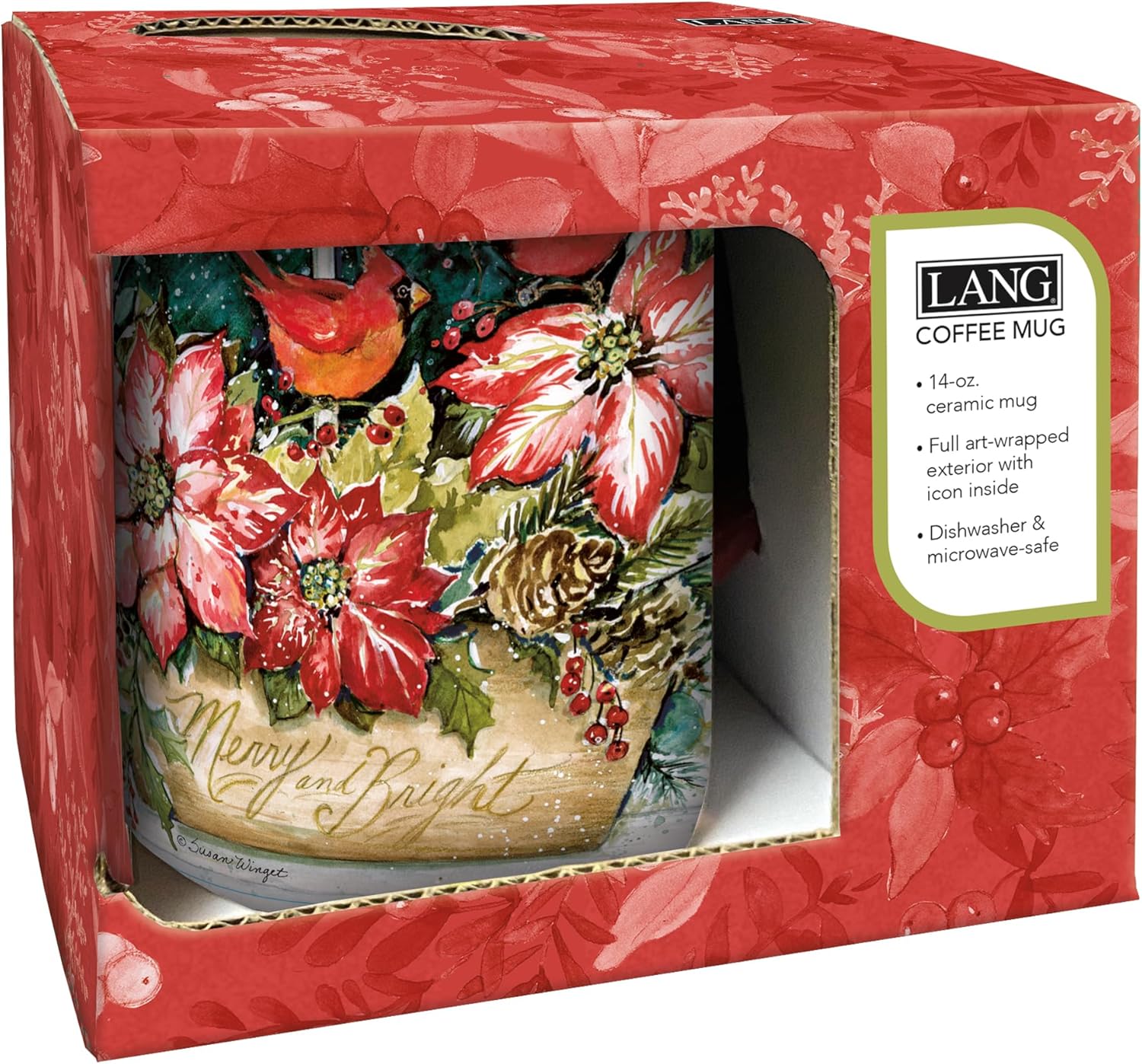 Celebrate the season with the delightful Merry and Bright Ceramic Coffee Mug, a perfect companion for your cozy winter evenings! Holding 14 ounces of your favorite hot beverage, this beautifully crafted mug features a stunning full art-wrap design adorned with vibrant poinsettias and a charming cardinal, encapsulating the festive spirit of the holidays. Each sip will remind you of the merriment and joy that comes with the season, making it a wonderful addition to your holiday traditions.