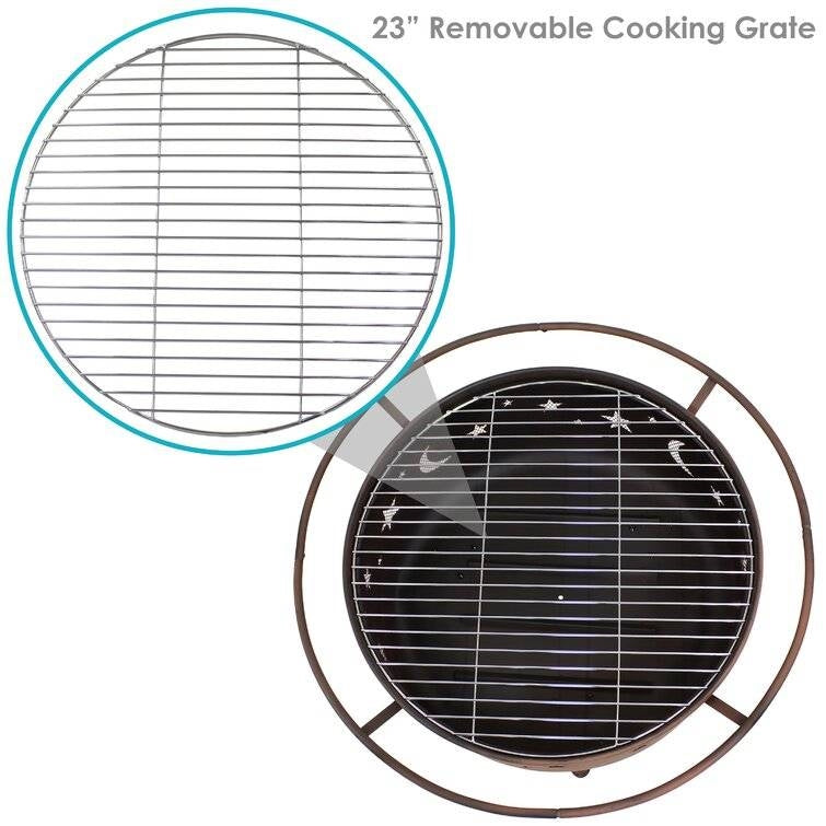 Moon Stars Sky Steel Fire Pit Bowl with Screen Cooking Grate and Poker