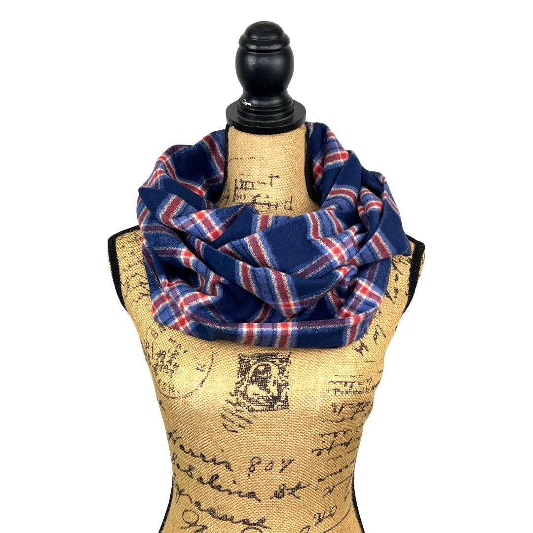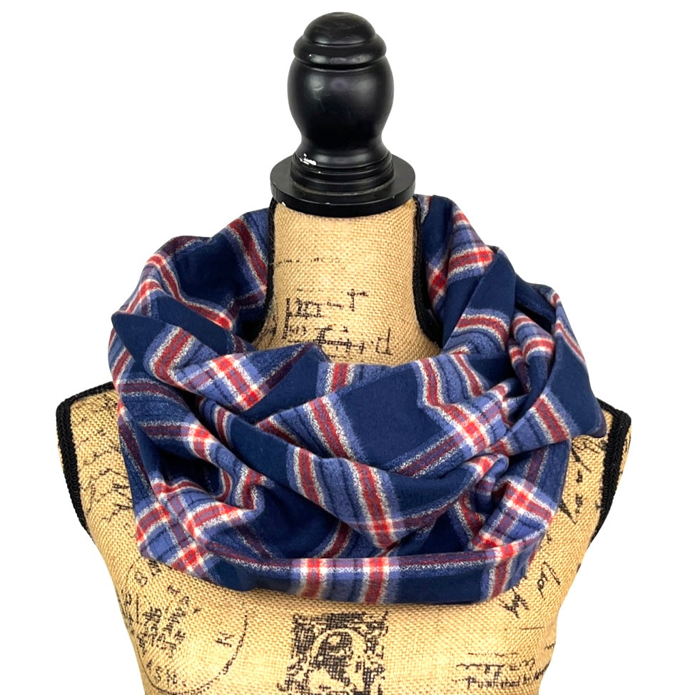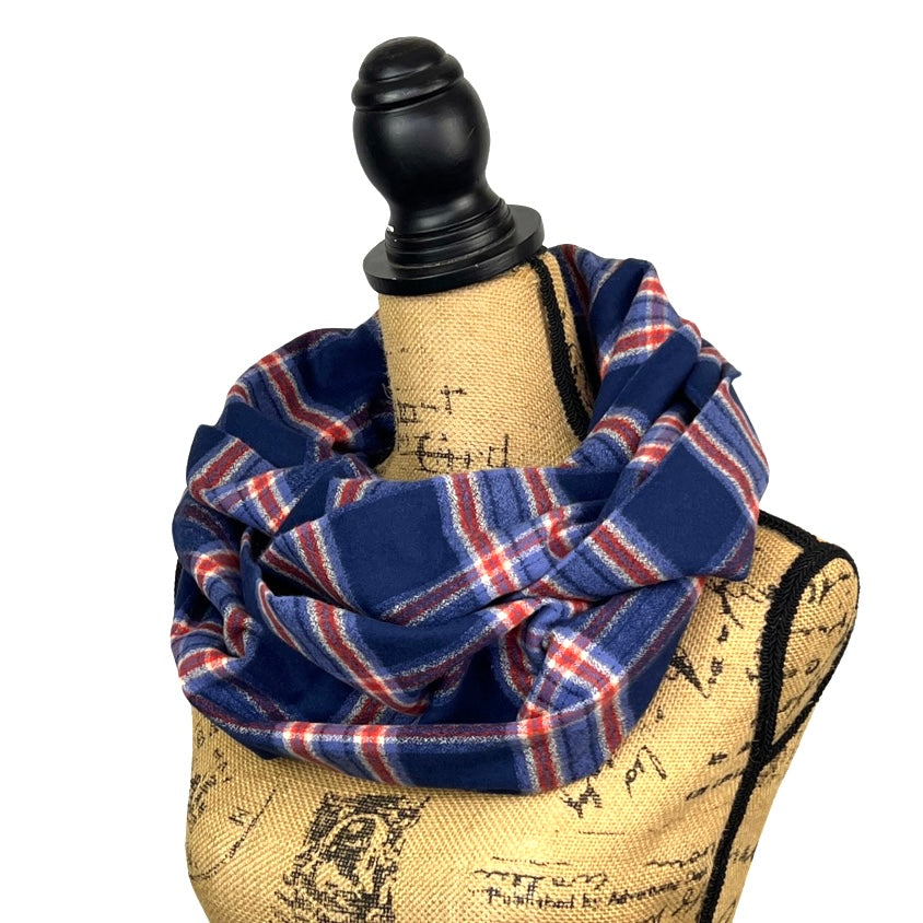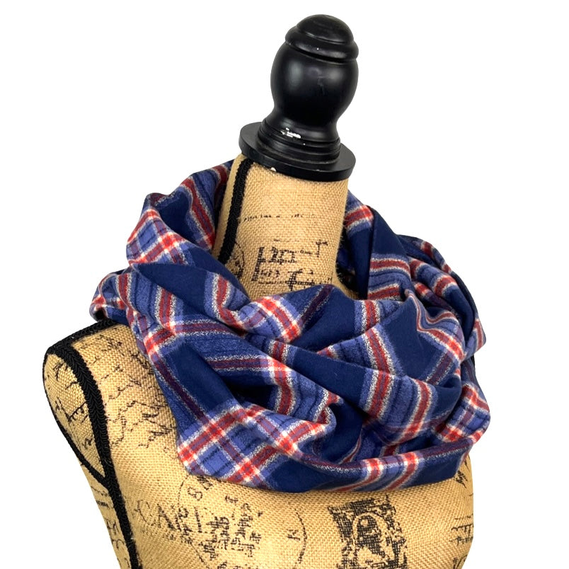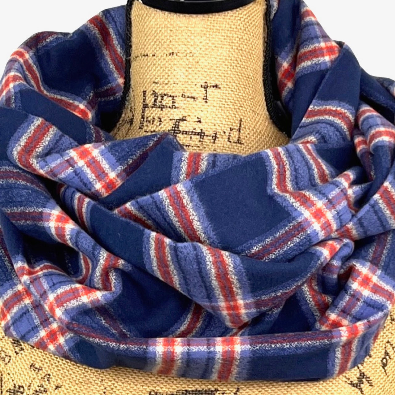 La bufanda infinita está hecha con un bucle de 2 yardas de franela de algodón de grosor medio y súper suave. Mide aproximadamente 112 cm cuadrados. Es lo suficientemente grande como para usarla como bufanda gruesa o sobre los hombros como chal o chal.