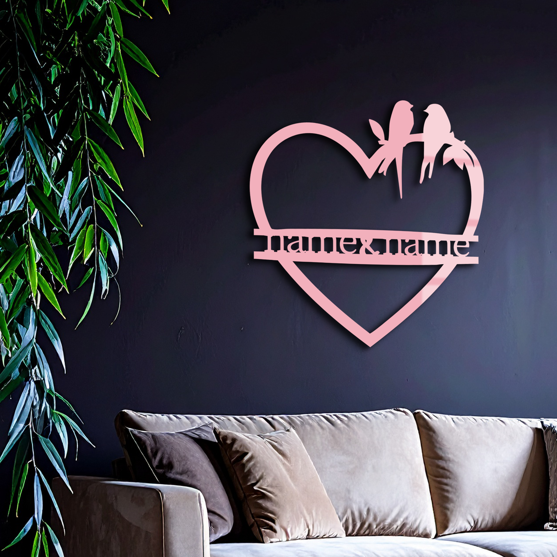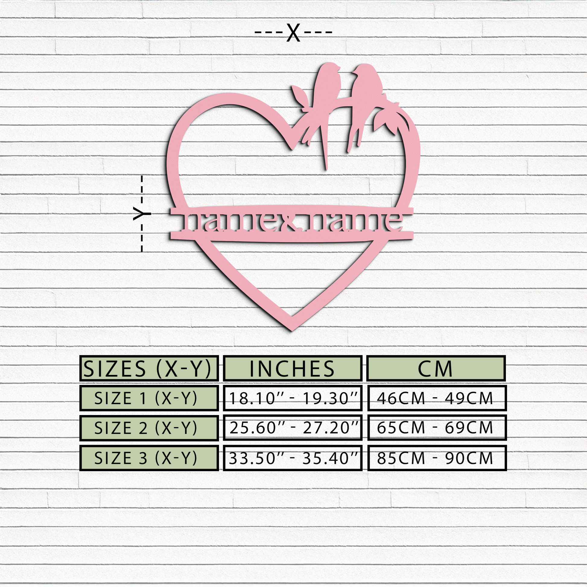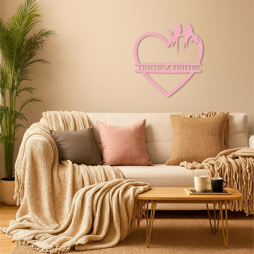 Celebrate love and togetherness with this Personalized Heart Metal Wall Art featuring two birds perched on a branch within a heart frame. Designed with space to include custom names, this piece makes the perfect gift for weddings, anniversaries, or Valentine’s Day. Crafted from premium quality metal and finished with a durable powder coating, it’s a timeless décor piece that will stand out in any home or outdoor setting.