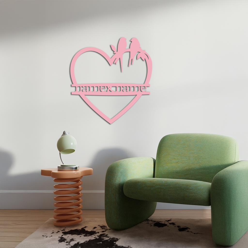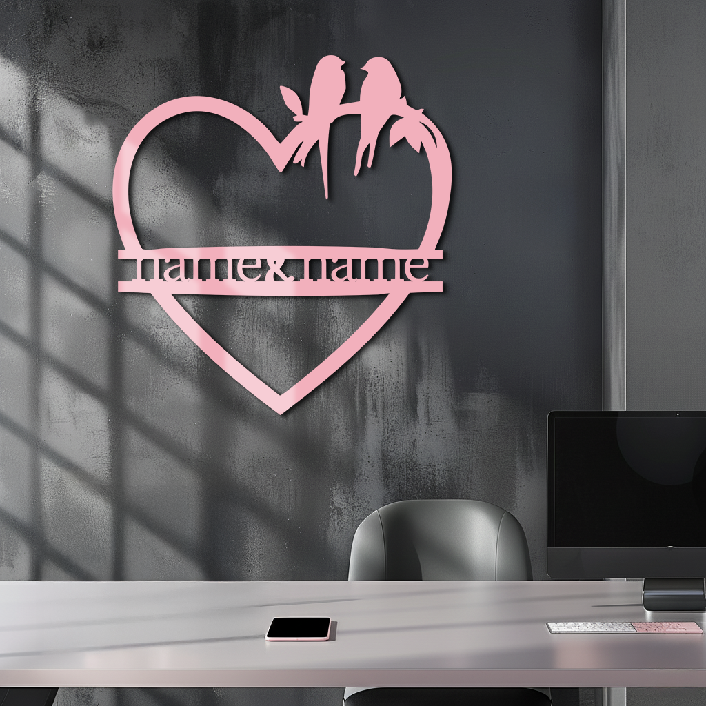Personalized Heart Metal Wall Art with Birds – Custom Name Couple Gift - KAFGP148