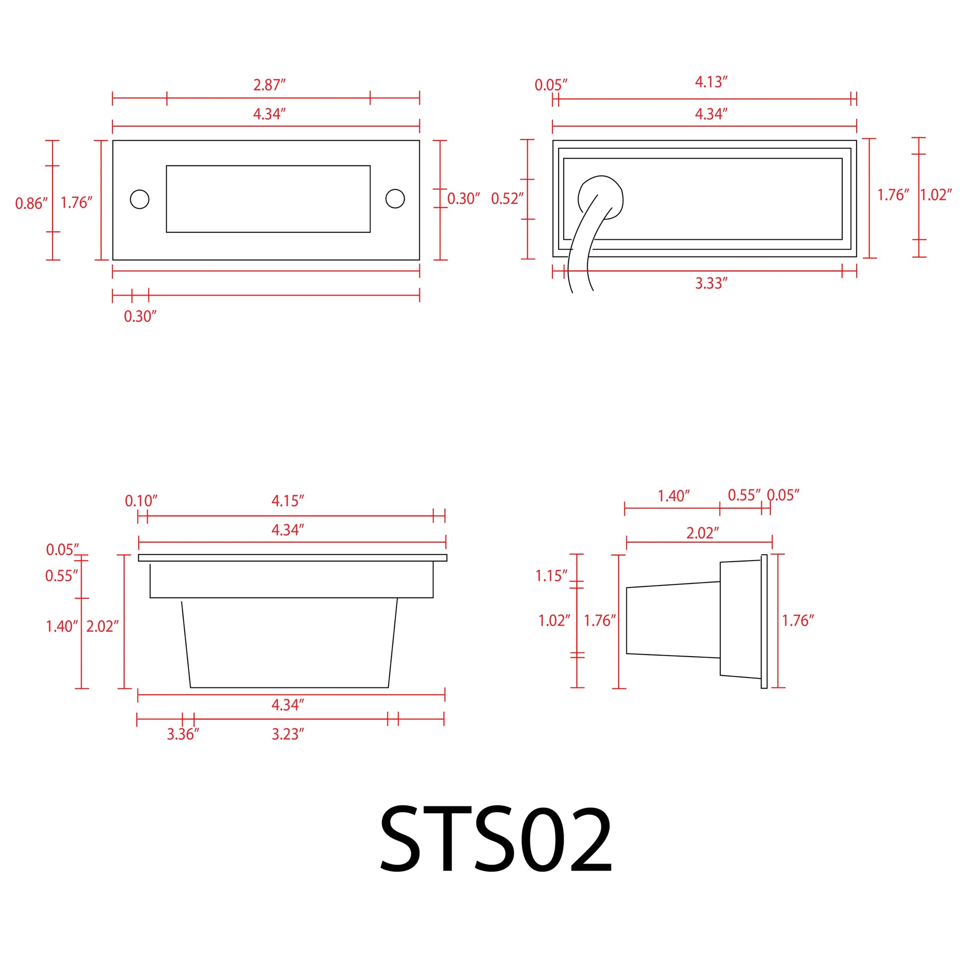 Las dimensiones de la luz de paso de ladrillo son 4,31" (L) x 1,75" (H) x 2" (D). Esta luz de ladrillo LED de bajo voltaje ahorra energía y es resistente al agua IP65, por lo que definitivamente reducirá su costo de electricidad y podrá funcionar en condiciones climáticas húmedas. Puede ser un lugar ideal para escaleras, terrazas, muros de contención, patios, pasarelas o cualquier otro lugar paisajístico interior o exterior.