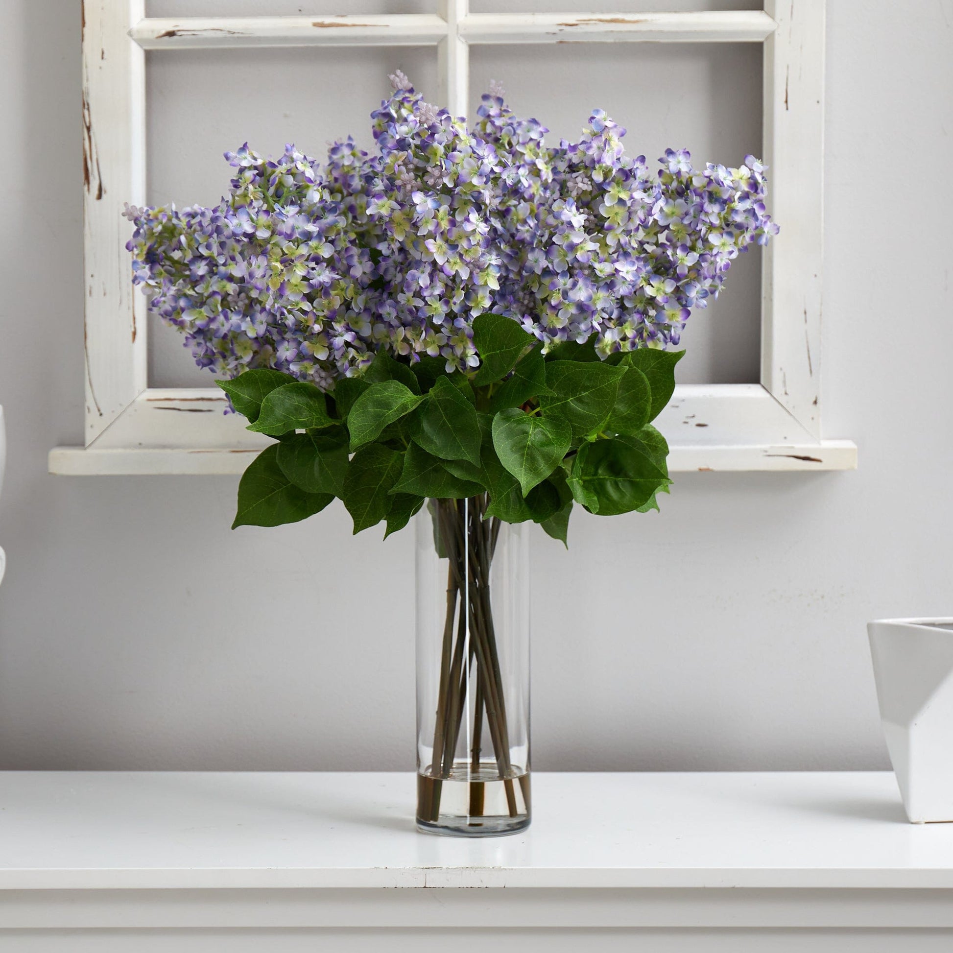 Arrangement de lilas artificiels de 61 cm avec vase cylindrique en verre