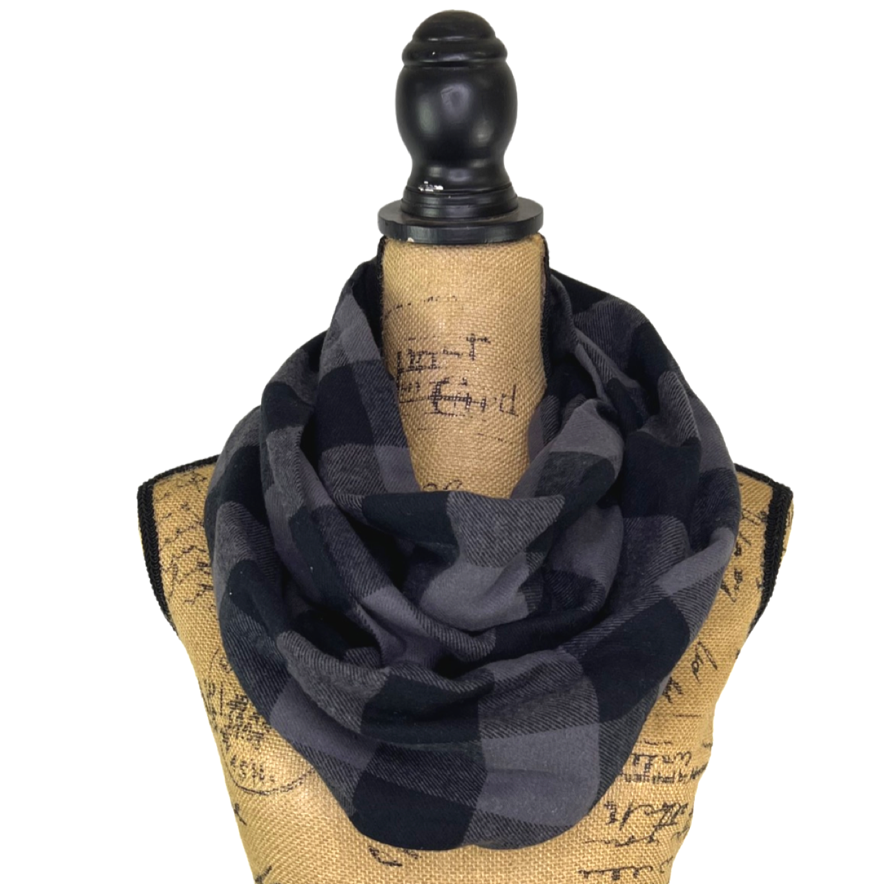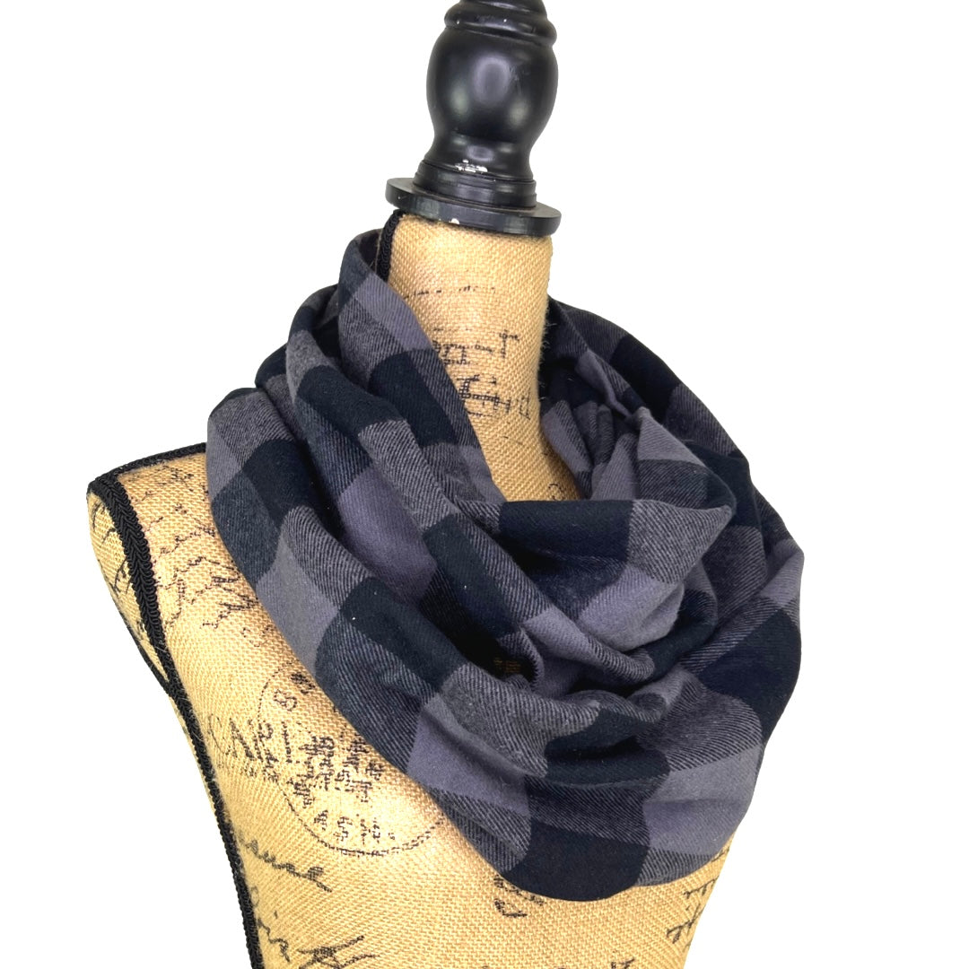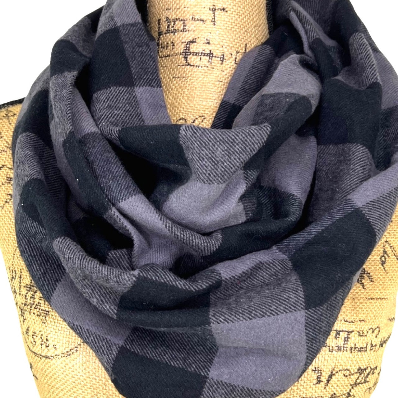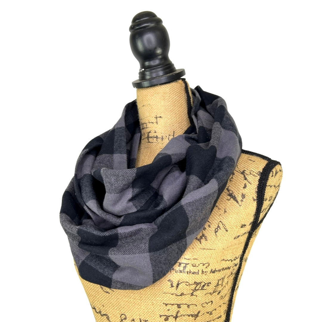 Écharpe classique à carreaux Buffalo en flanelle gris anthracite et noire, à l'infini ou en couverture