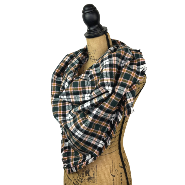 Restez au chaud et stylé avec cette écharpe infinie ou cette écharpe-couverture en flanelle douce et chaude ! Avec son motif écossais noir, blanc, vert forêt, caramel et rose pâle, elle apportera une touche d'élégance à toutes vos tenues. Parfaite pour les froides saisons d'automne et d'hiver !