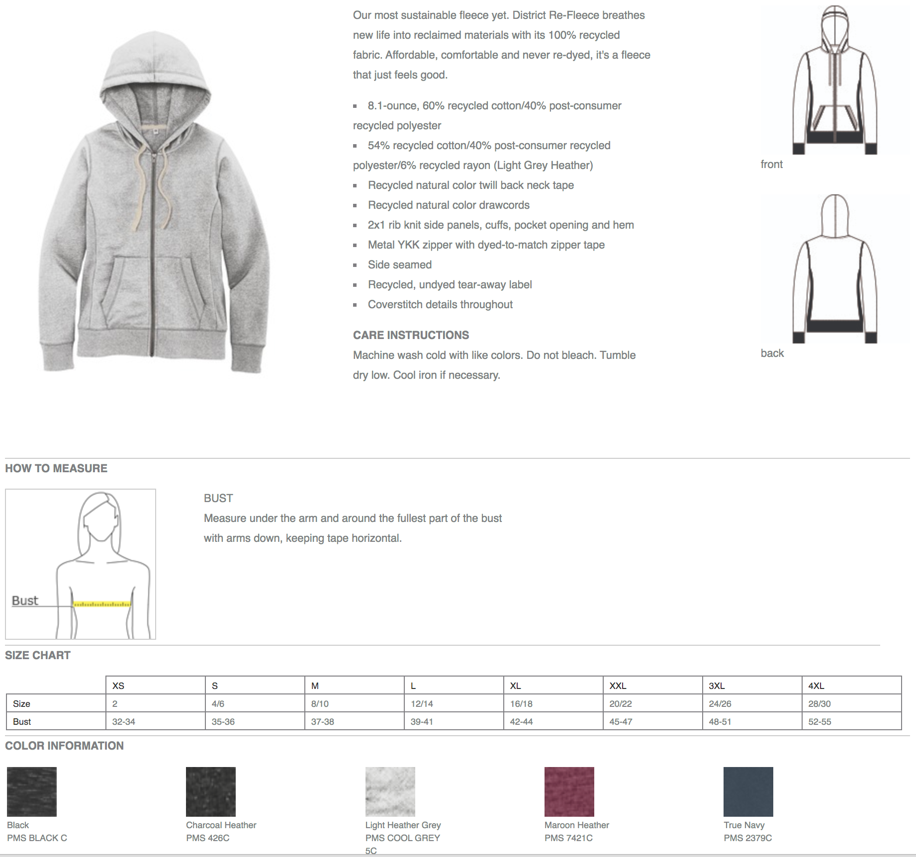 Sweat à capuche entièrement zippé District Re-Fleece pour femme : 8,1 onces, 60 % coton recyclé/40 % polyester recyclé post-consommation, (gris clair chiné 54 % coton recyclé/40 % polyester recyclé post-consommation/6 % rayonne recyclée, bande de propreté en sergé de couleur naturelle recyclée au dos du col, cordons de serrage de couleur naturelle recyclés, panneaux latéraux, poignets, ouverture de poche et ourlet en tricot côtelé 2x1
