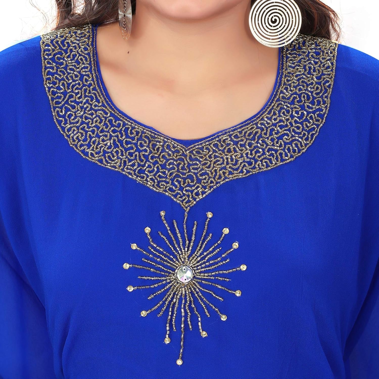 Elegant Hand-Embroidered Rhinestone & Beaded Kaftan – One Size Fits All