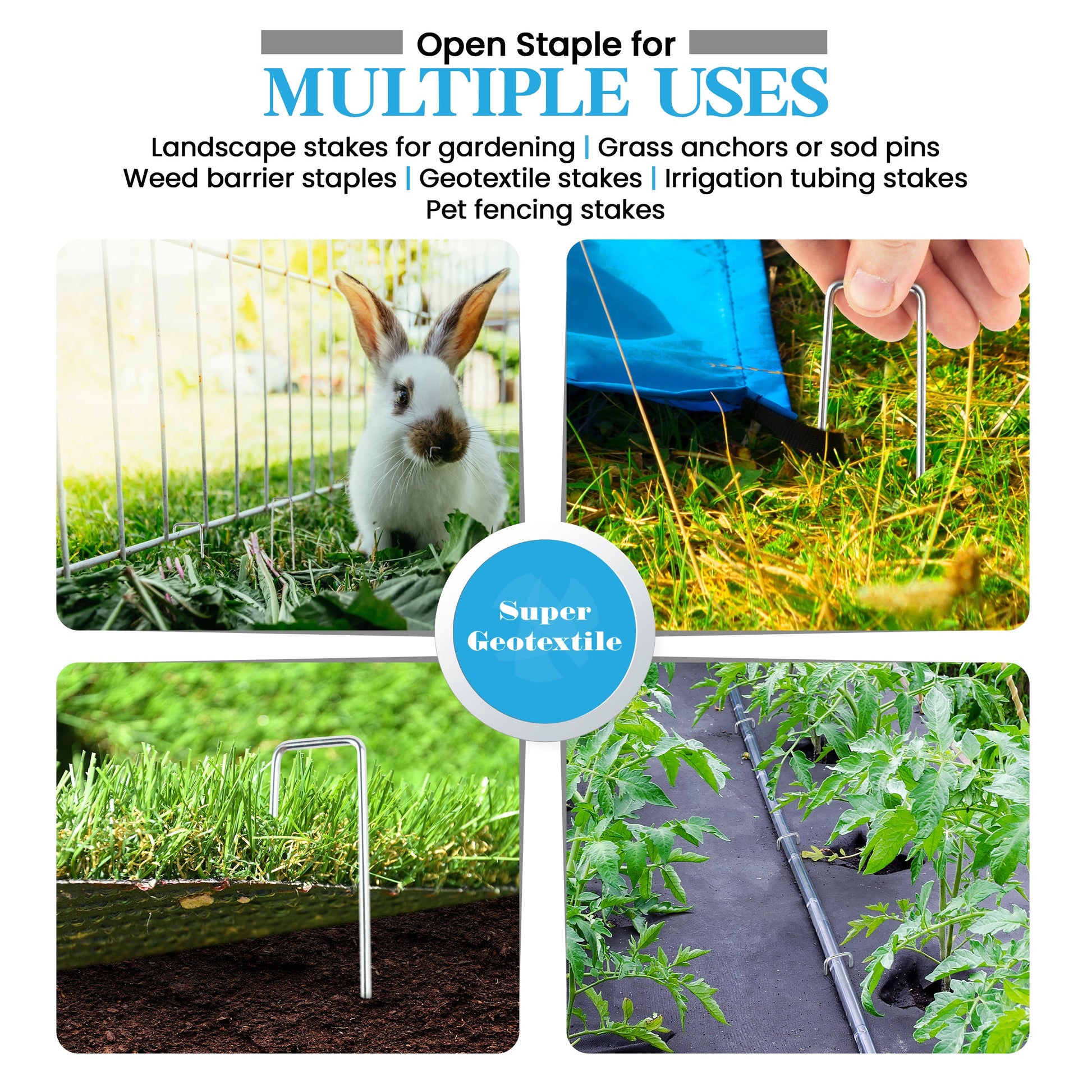 Agrafes paysagères - Piquets de gazon robustes en U galvanisés de calibre 11 pour barrière anti-mauvaises herbes et aménagement paysager
