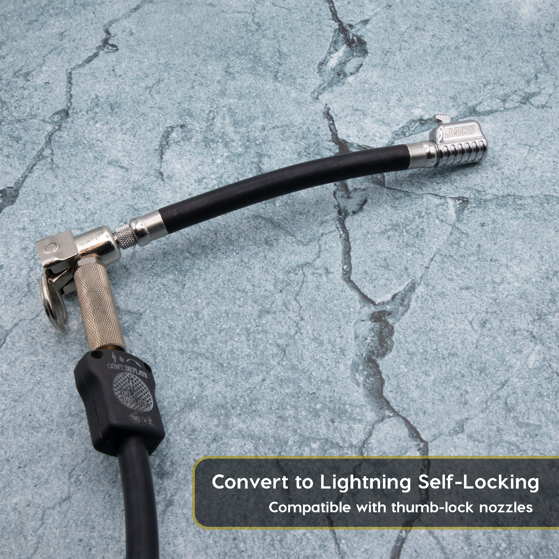 - Conçu pour durer : Fabriqué en alliage d'aluminium léger et résistant, avec un tube rallonge en caoutchouc ultra-souple et flexible. Ajoutez instantanément la technologie Lightning à n'importe quel gonfleur de pneus ou compresseur d'air portable avec le S2X de JACO.