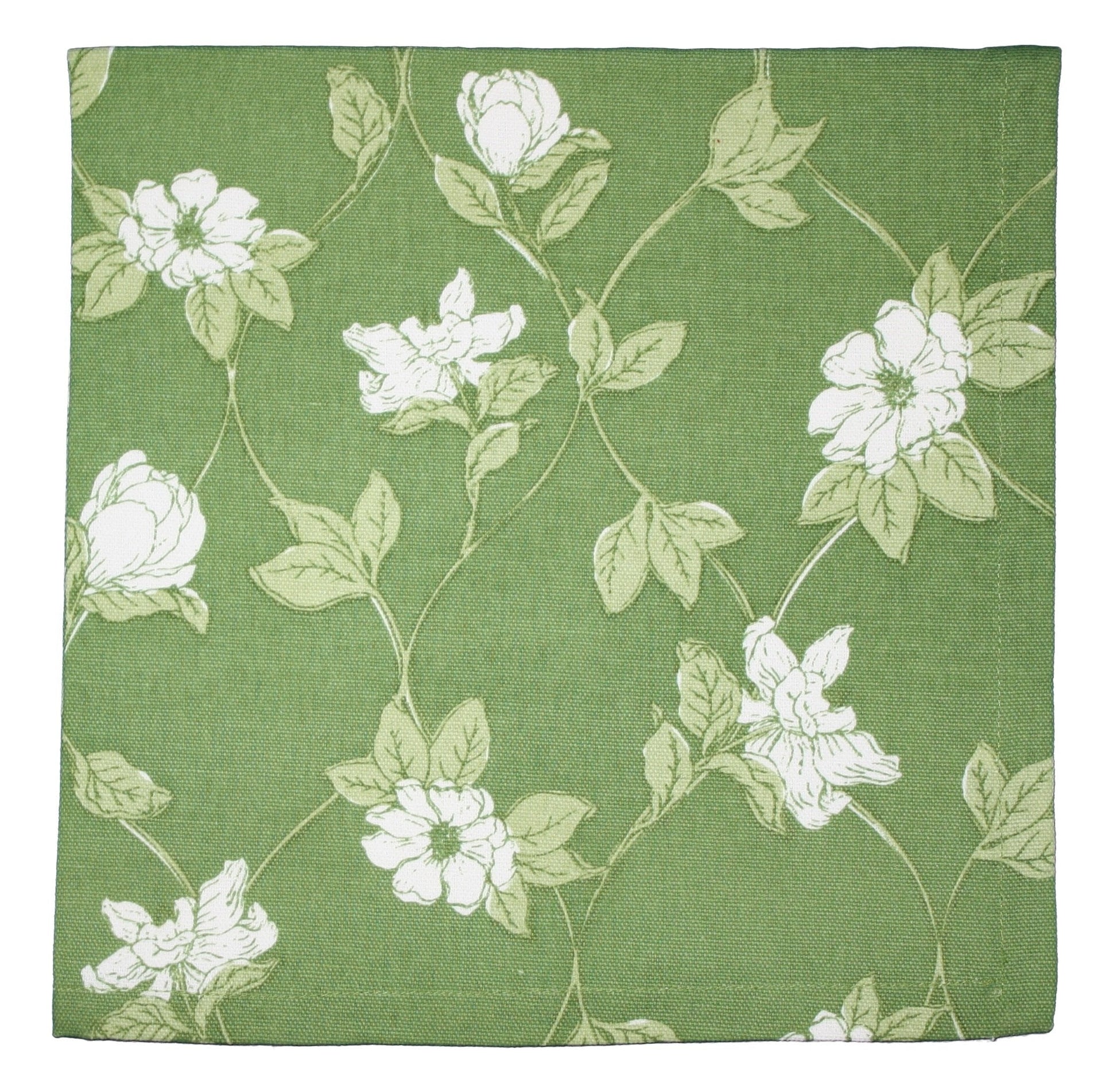 Green woven napkin with a white magnolia flower pattern from the Williamsburg Collection