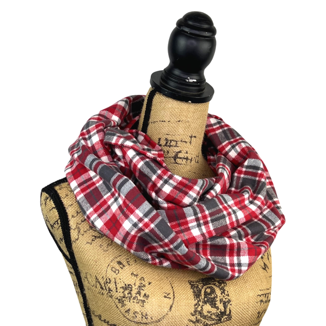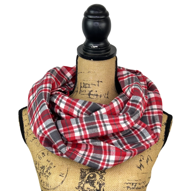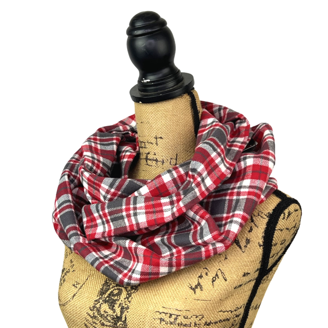 Soyez élégante et restez au chaud avec cette jolie écharpe infinie ou écharpe-couverture en flanelle à carreaux rouges, gris anthracite et blancs ! Confectionnée dans un tissu doux et confortable, cette écharpe à carreaux classique est l'accessoire idéal pour se blottir lorsque les températures baissent.