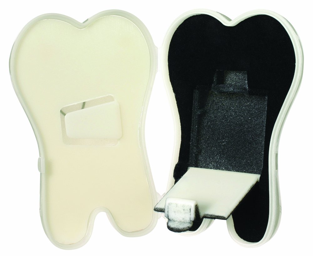 This cheery plastic tooth opens to reveal a special compartment to keep baby teeth safe.