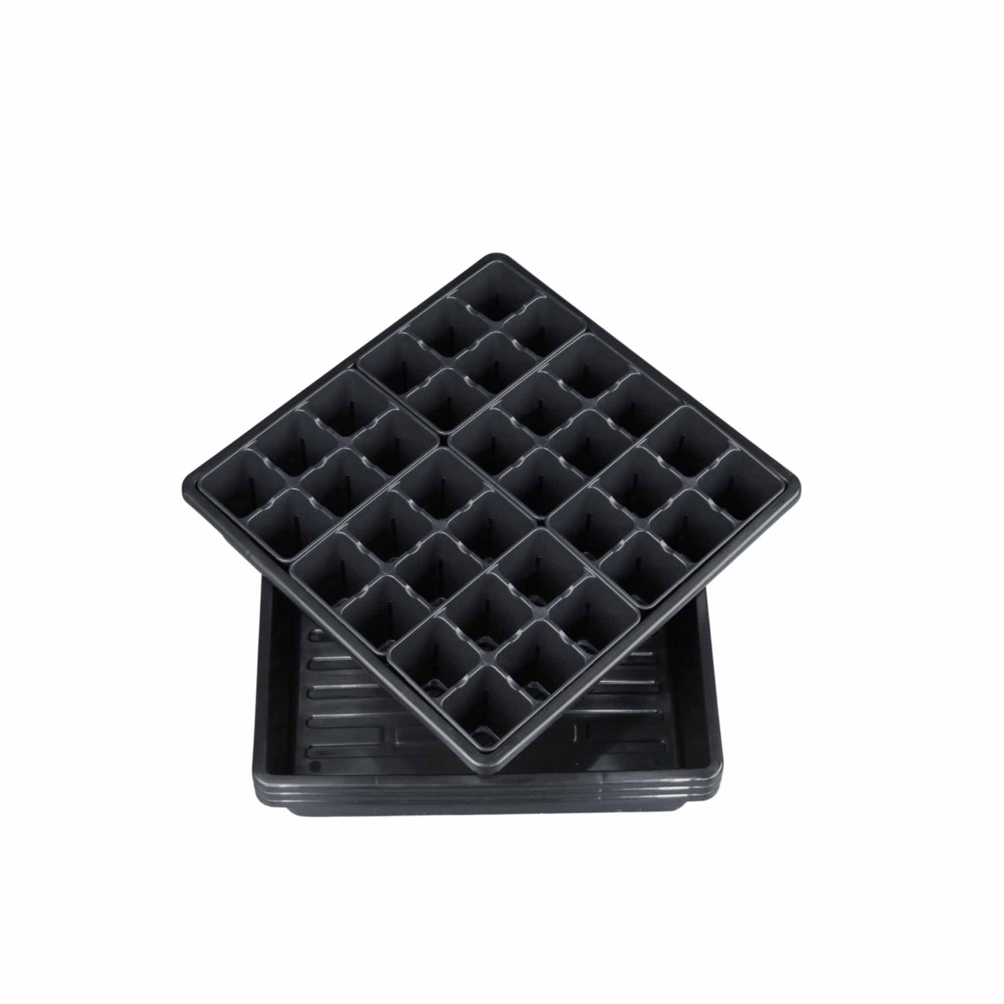 - 6 Cell - Outer dimensions: 5" x 3⅓" x 2¼" height, each cell in the tray insert is 1½" x 1½" x 2⅛" on top, which tapers down to 1" at the bottom, Air pruning slits measure 0.11" wide x 1¼" tall.