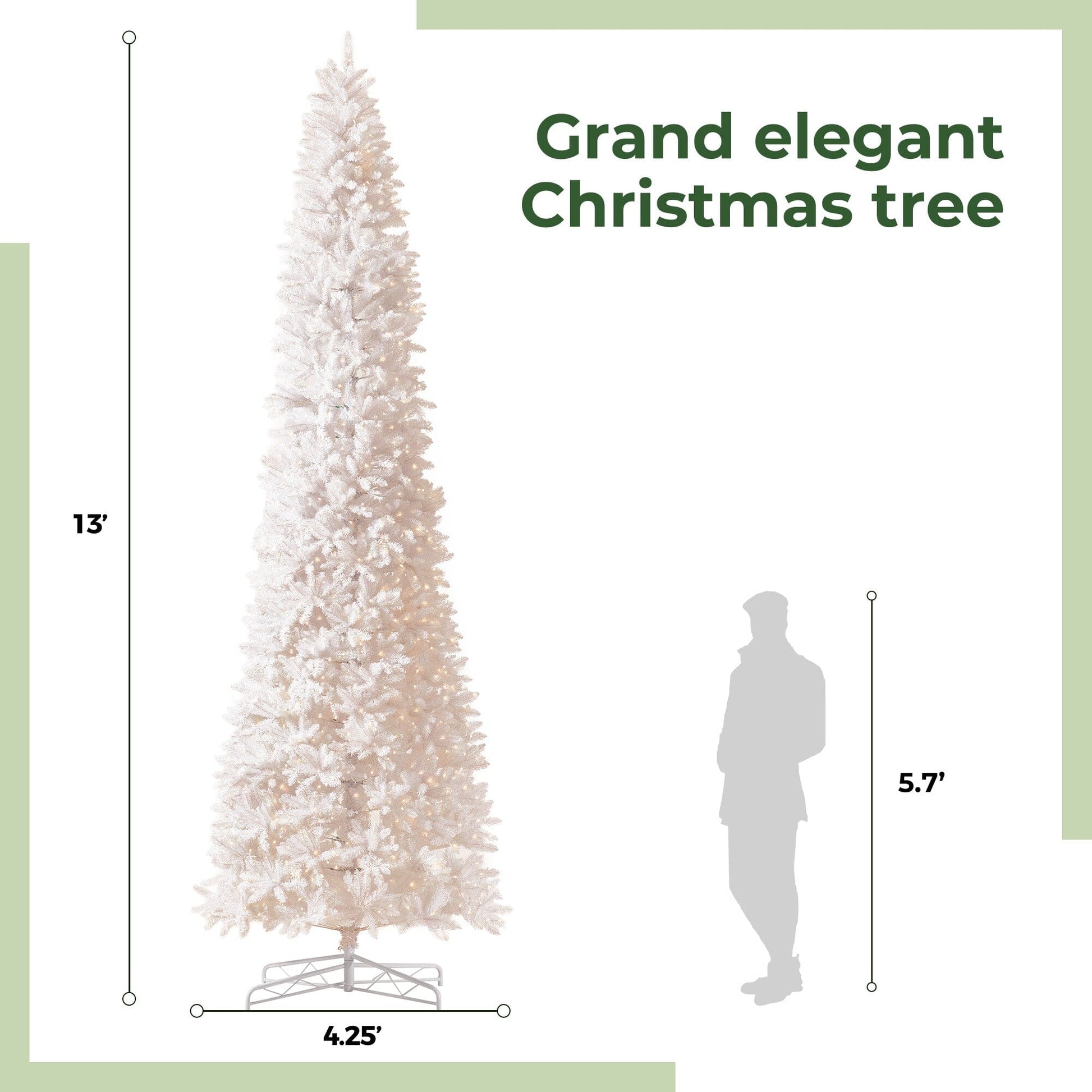 13’ Slim White Artificial Christmas Tree with 1350 Warm White LED Lights and 3924 Bendable Branches