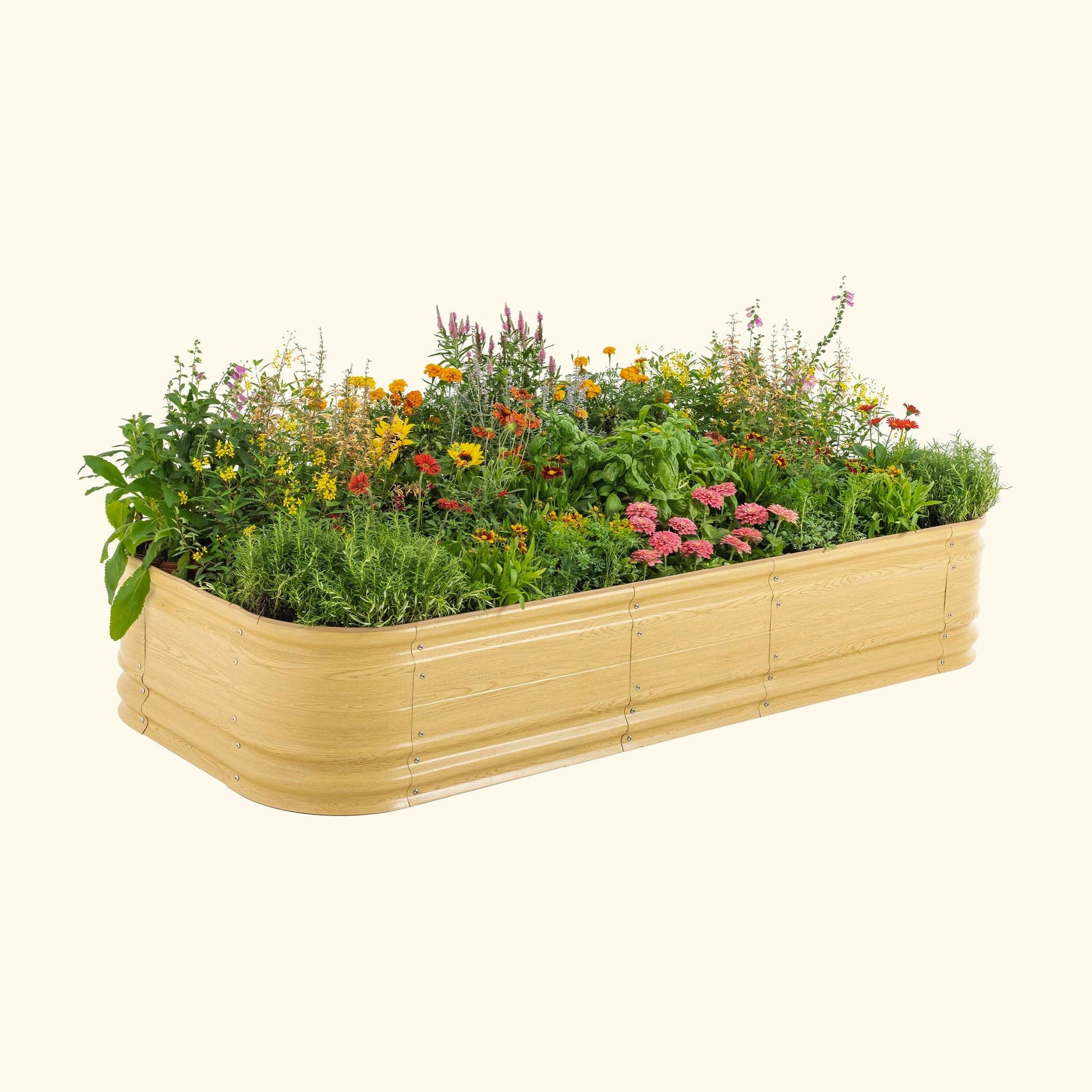 All of our extra large metal raised bed gardens and planters are a great investment compared to wood. They are designed for a 20+yr lifespan crafted with treated steel, stainless steel hardware and USDA approved protective coating.