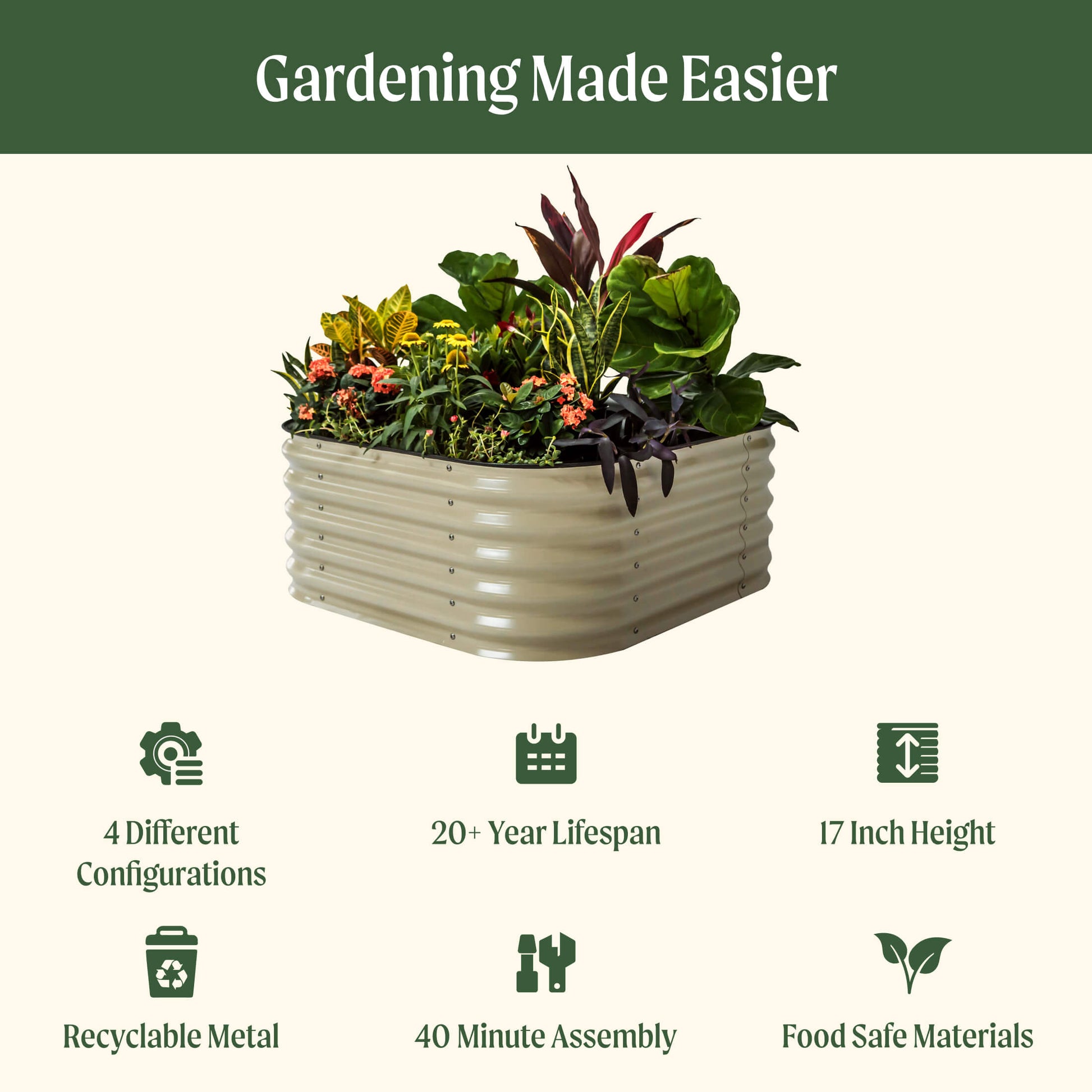 17" Tall Small Raised Garden Bed 4 in 1 Modular Metal