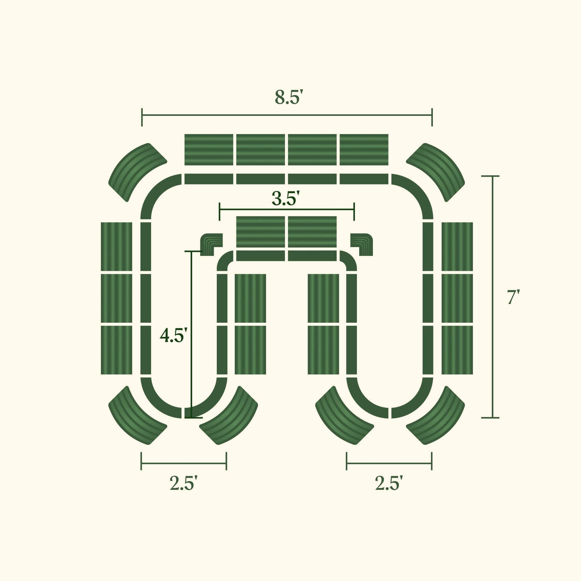 The Vego large U Shaped raised bed garden design offers a convenient wrap-around configuration, giving you easy access to more growing space for your fresh vegetables, herbs and flowers. The 17 inch tall large U shape raised garden bed is a great addition to large garden spaces.