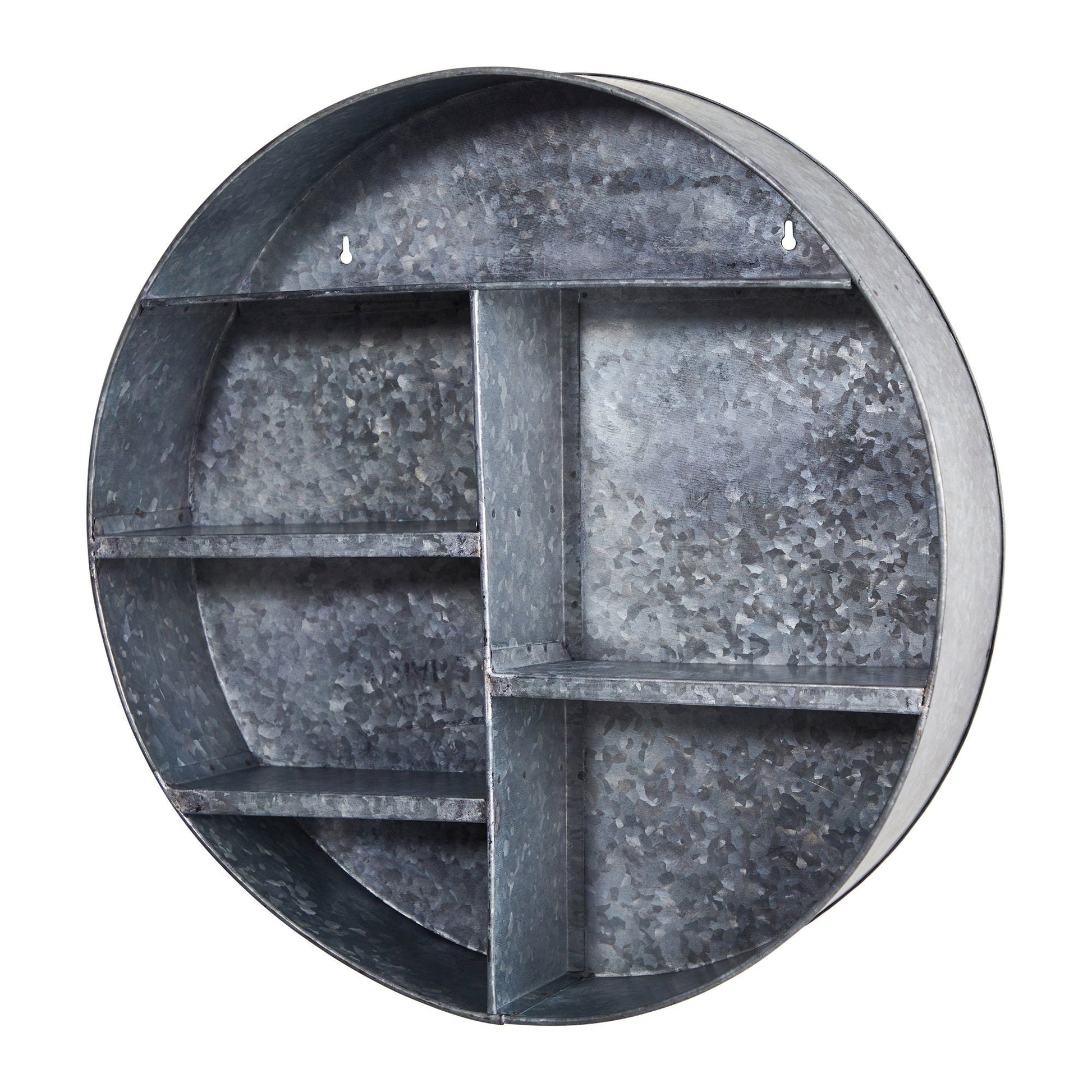 18” Galvanized Circular Metal Wall Mounted Shelf with Four Tier Shelves