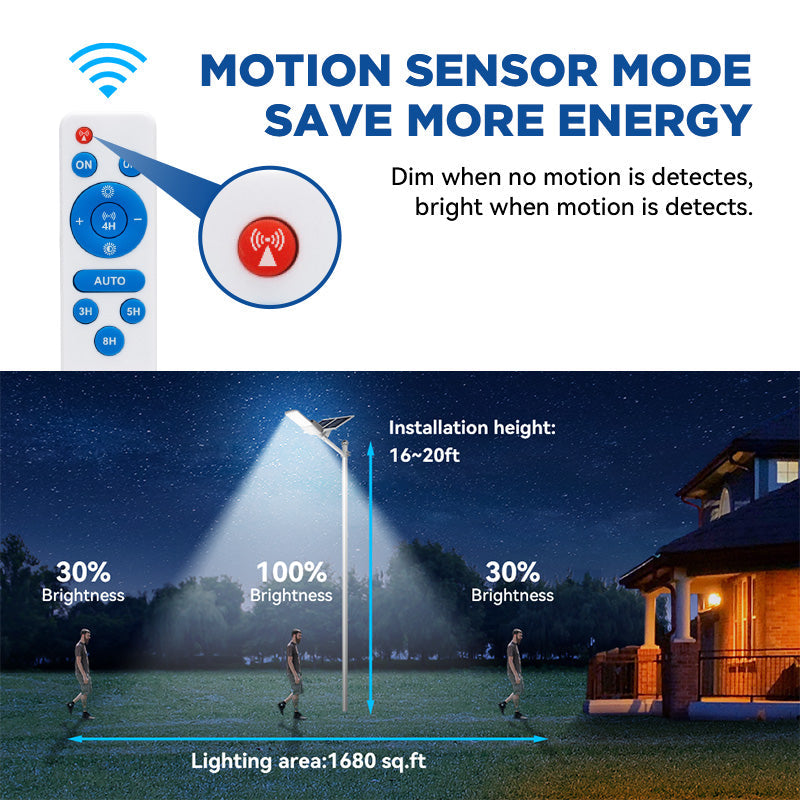 Pole or wall mount options included with 13-24ft adjustable installation height. 1,680 sq.ft optimal coverage area with no wiring required - operational in 30 minutes.