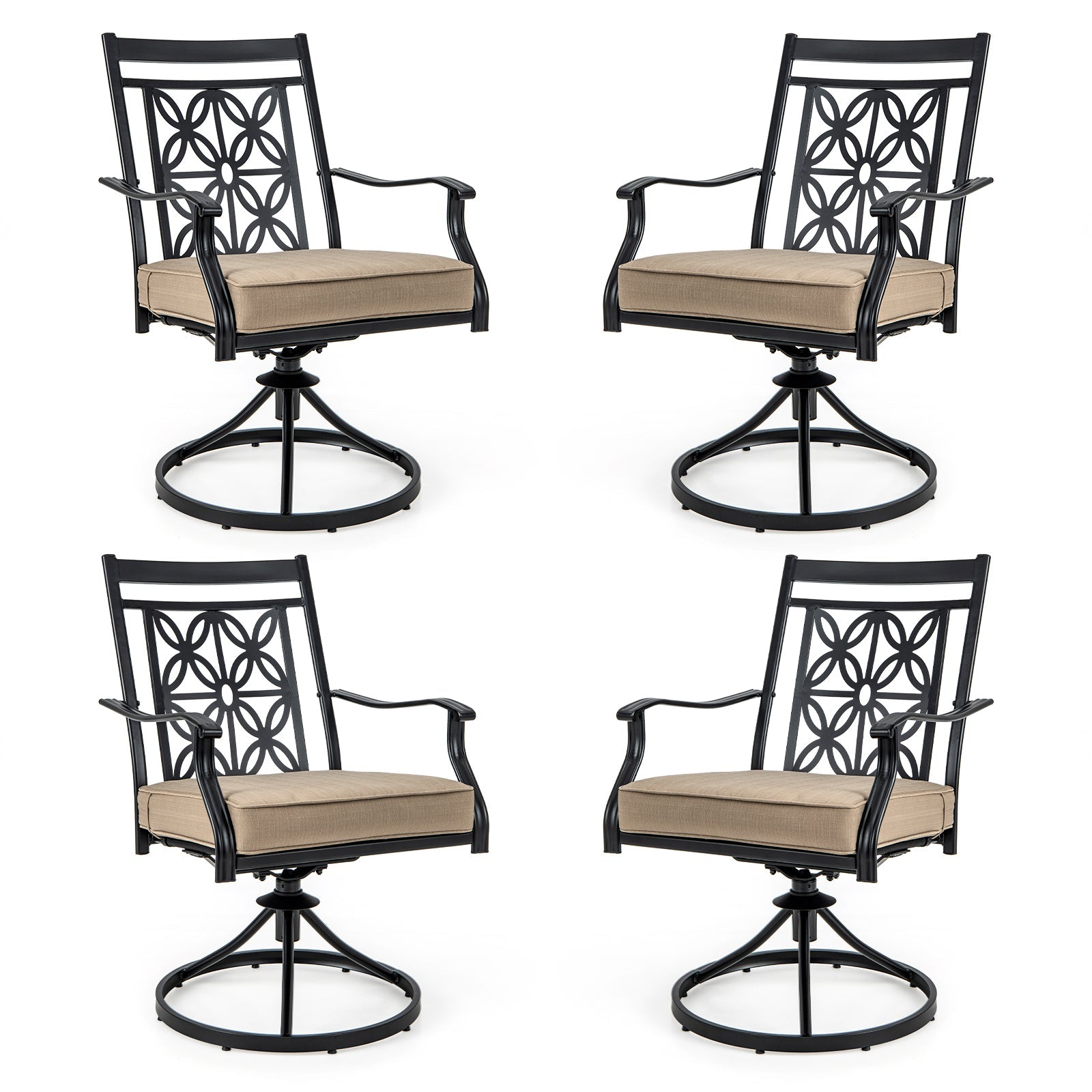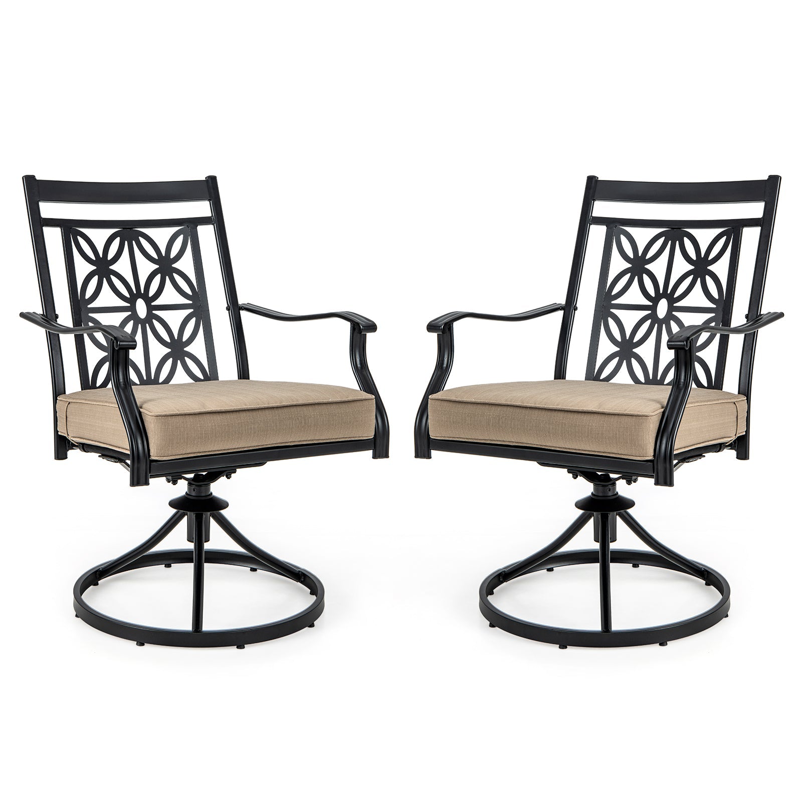 2 Pieces Patio Swivel Chairs with Blossom Pattern Backrest and Cushions-Black