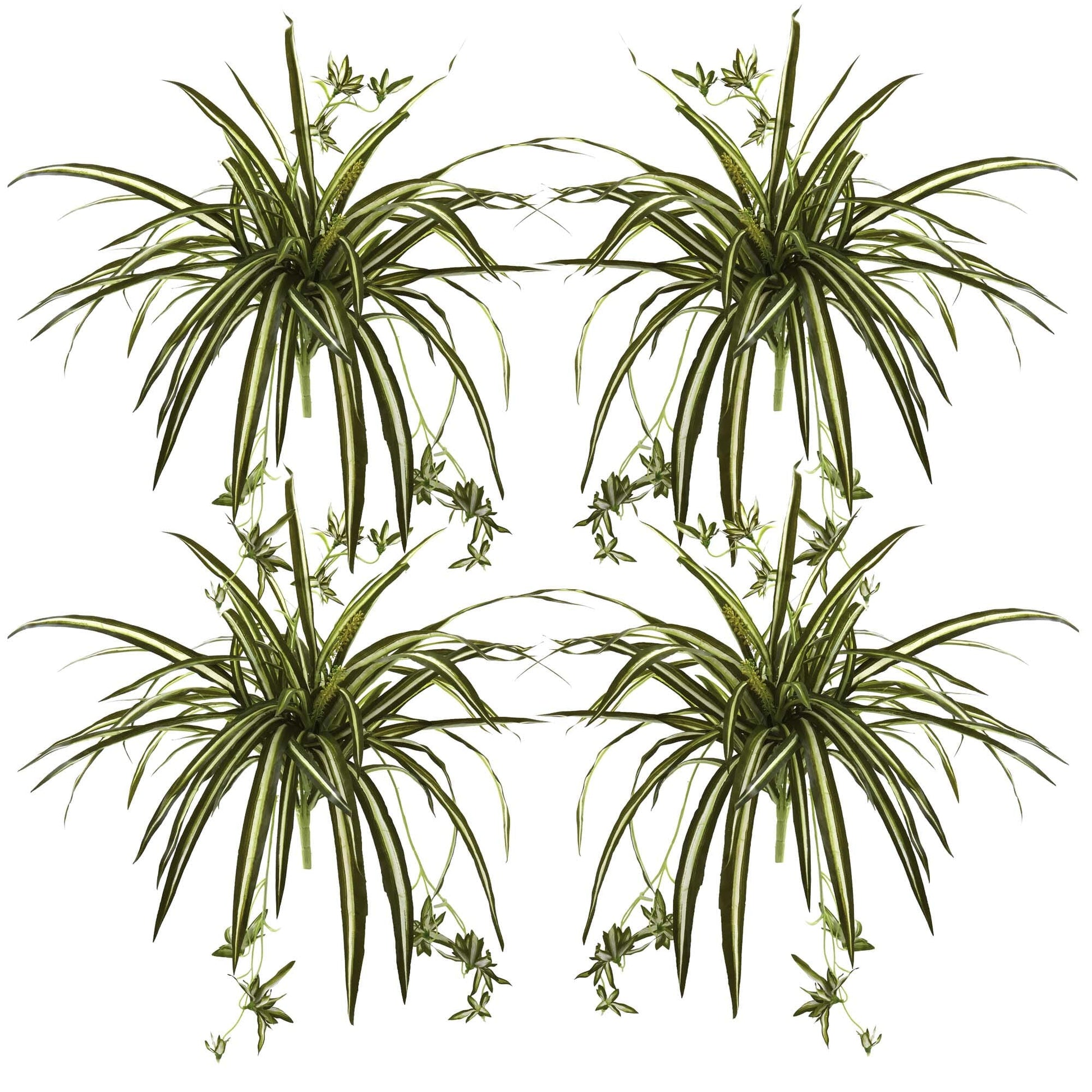 Spider Plant, commonly known as Chlorophytum comosum, has lengthy leaves that droop over giving it a spider leg look. Accenting thin blades are striped, with a light green-yellow; accented with dark green bordered edges. Place this set of four in an attractive planter to match your home decor.