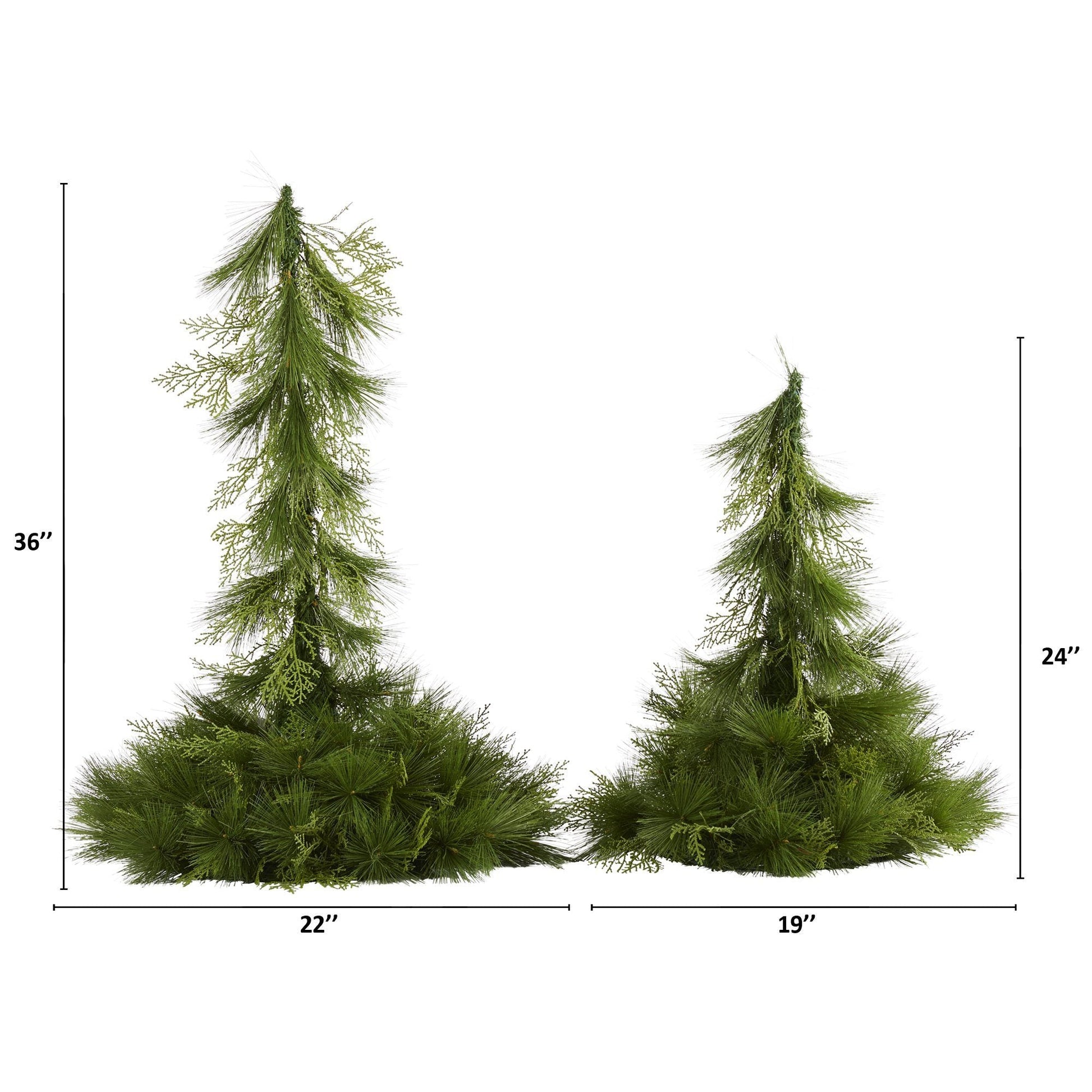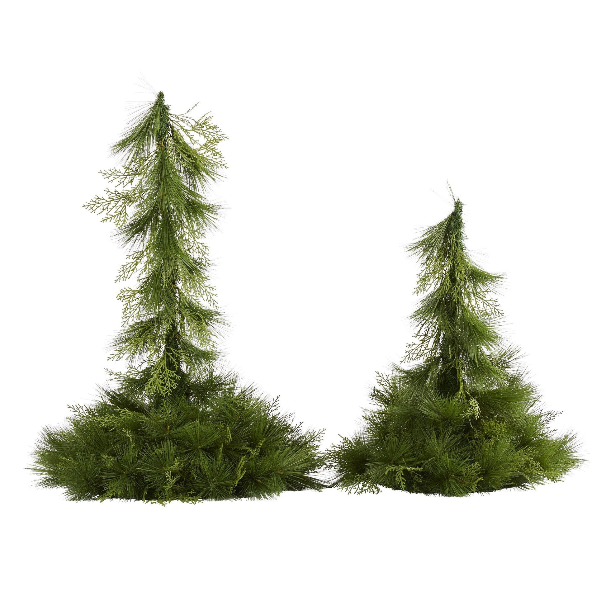 Create a miniature Christmas scene even in the smallest spaces with this (duo) set of artificial table top/hanging Christmas decor. Standing 24’ and 36’ respectively, both fake trees are designed from a rich overgrowth of seasonal evergreens, made up of several bendable branches for showcasing all your favorite holiday ornaments. Great for those with limited space, this pair of artificial Christmas decor require absolutely no maintenance and can be reused year after year
