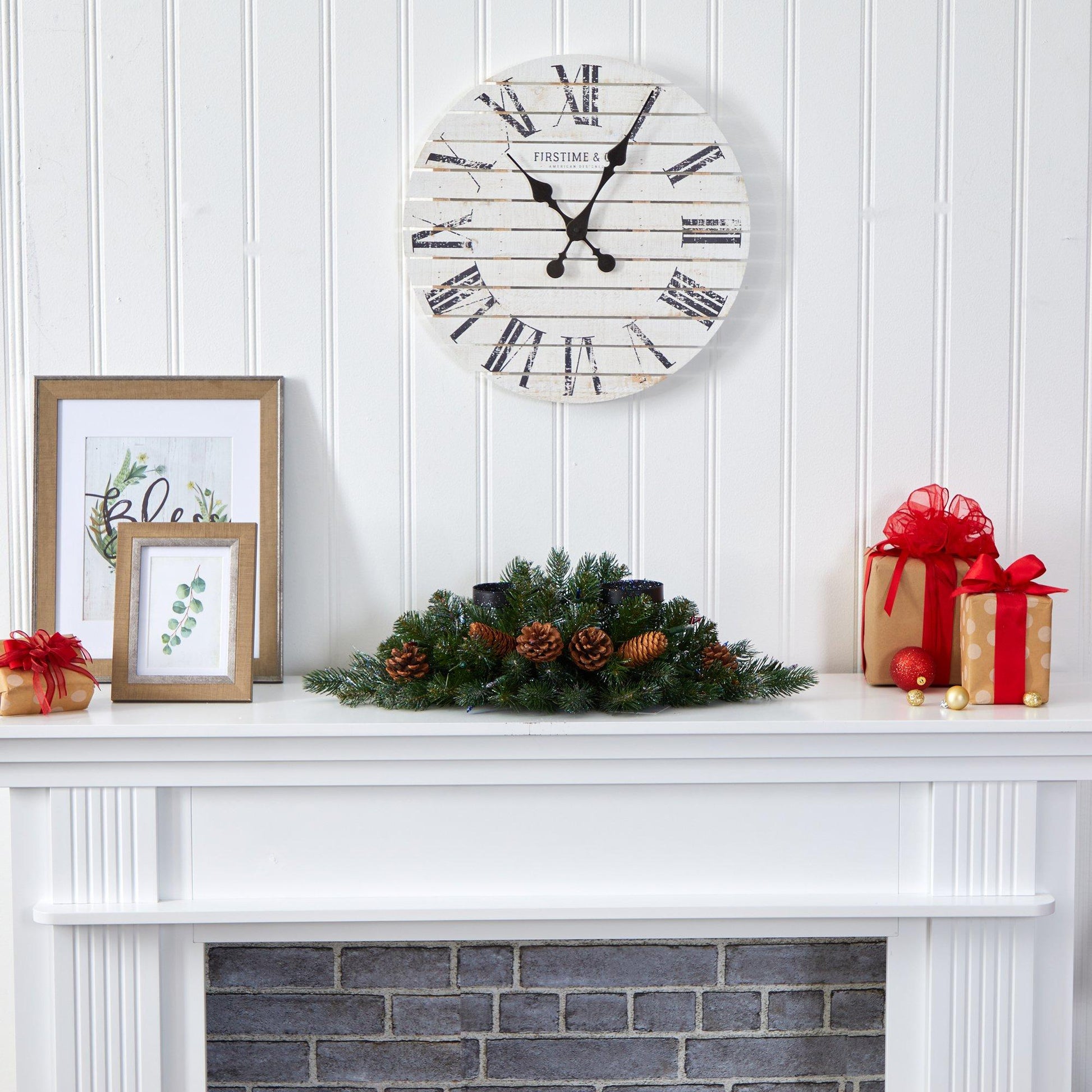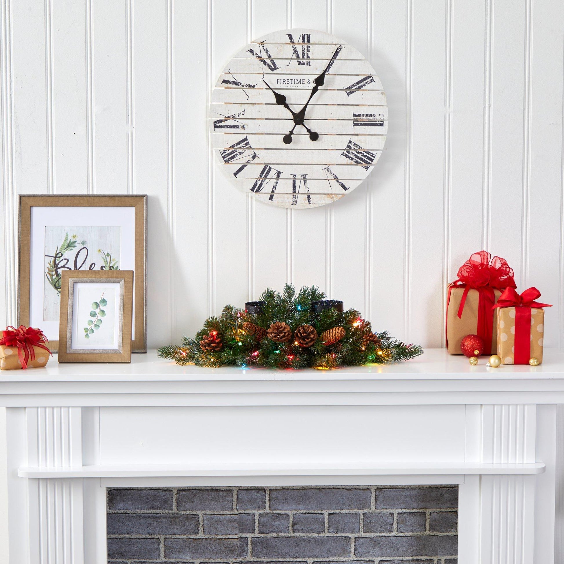 Get your home twinkling this holiday season with the help of this artificial candelabrum; specifically designed as an elaborate candle holder, it’s intricately designed from a rich overgrowth of realistic looking pine greenery, handsomely accented with miniature faux pinecones, all carefully surrounding a trio of candle holders. Better yet, this seasonal centerpiece comes already pre-strung with 35 multicolored lights and lightly dusted with a mix of high-shine glitter and fake snow to evoke the ultimate winter wonderland. Reaching 24” long, this winter-ready decorative accent would make a snowy addition to a mantle or a holiday-inspired tablescape.