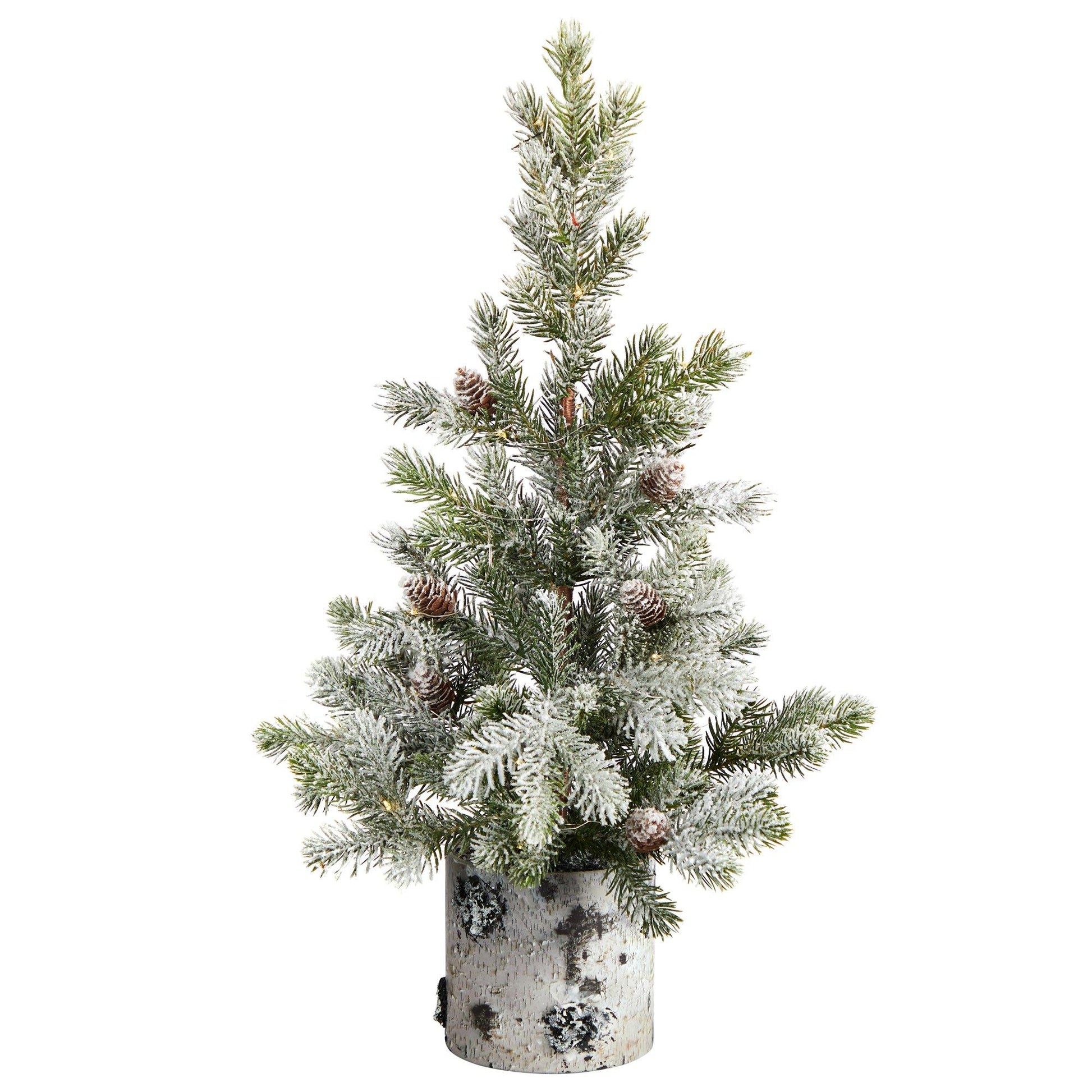 24” Flocked Artificial Christmas Tree in Decorative Birch Bark Planter