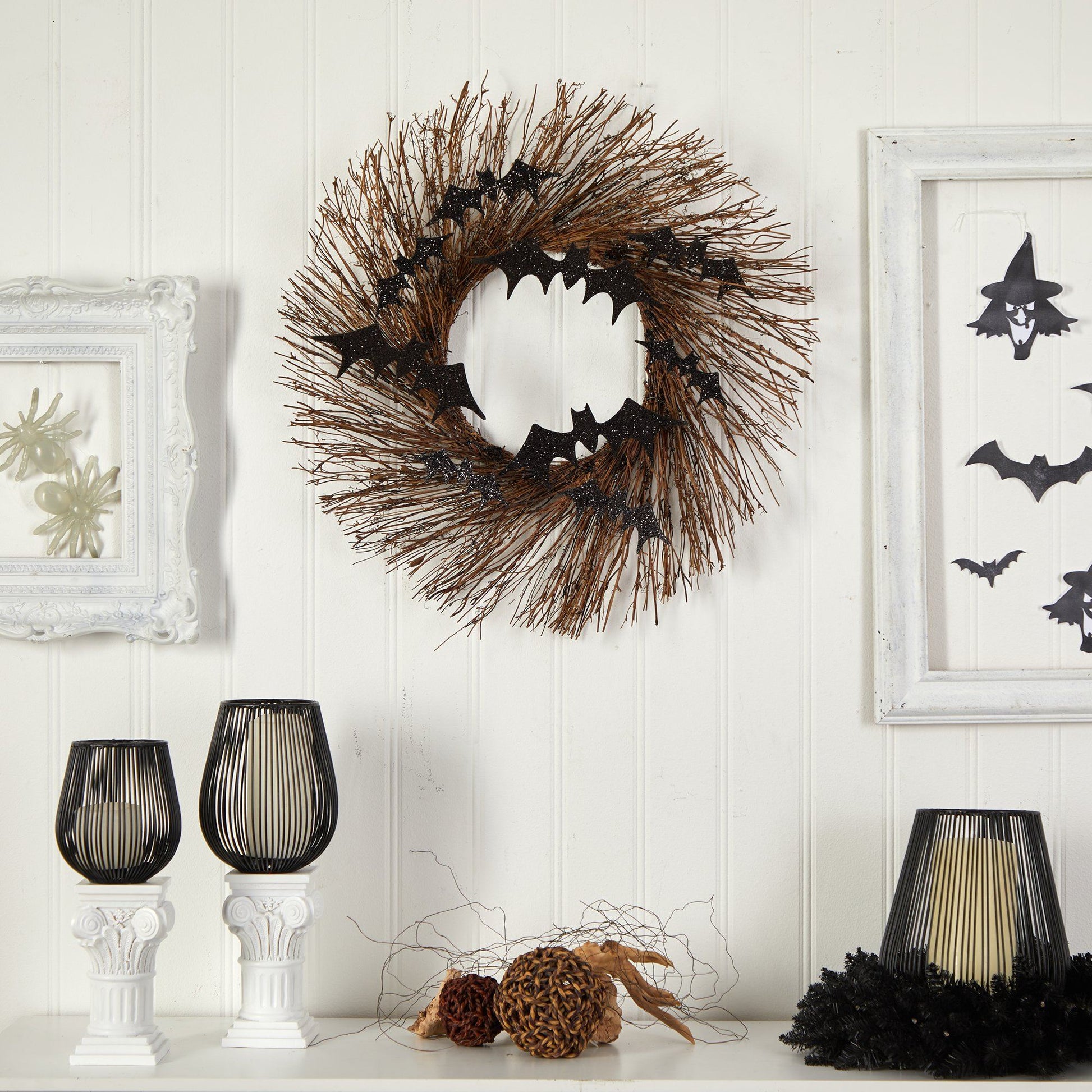 Halloween is about to be BAT-tastic. Scare your friends with this Bats Halloween Twig Wreath displaying a spooky sight. Bats adorn the circular twig silhouette for a rustic-inspired look. With a diameter of 26" house in any bare wall or door. Perfect for a kids room, door, or living room.