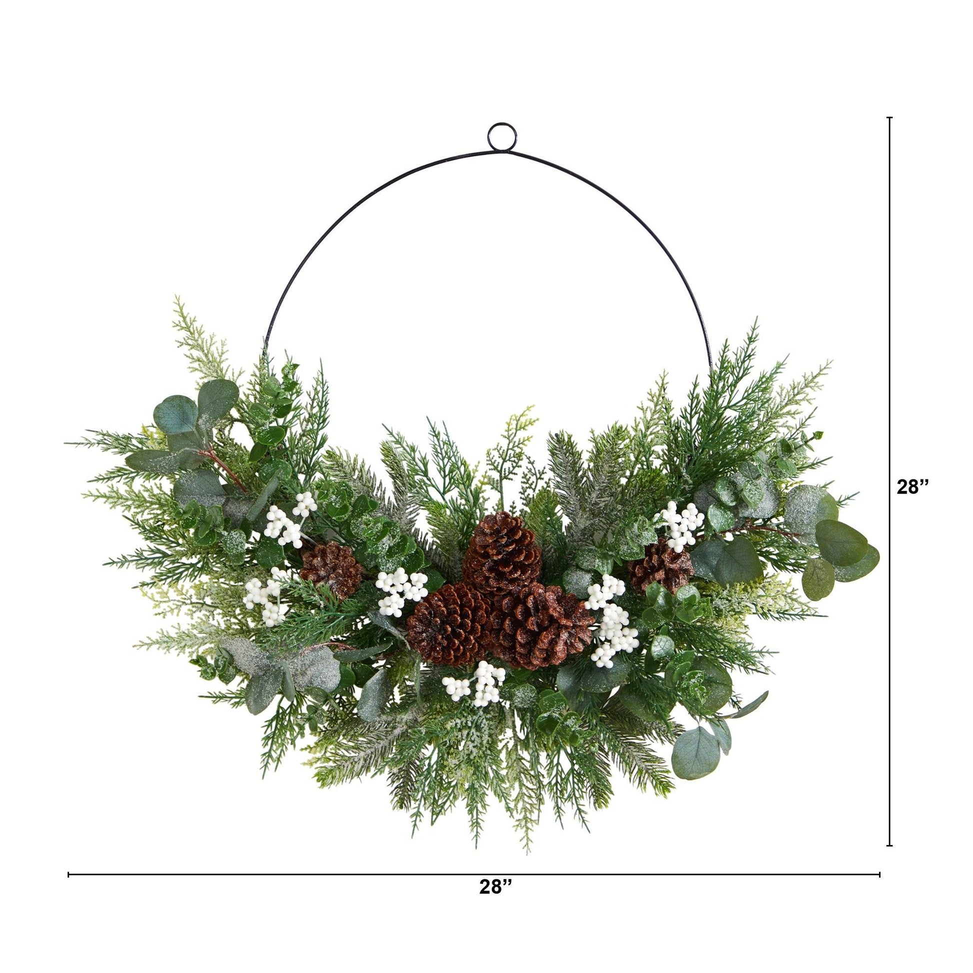 28” Christmas Pine, Eucalyptus, and Berries Metal Circlet Artificial Wreath