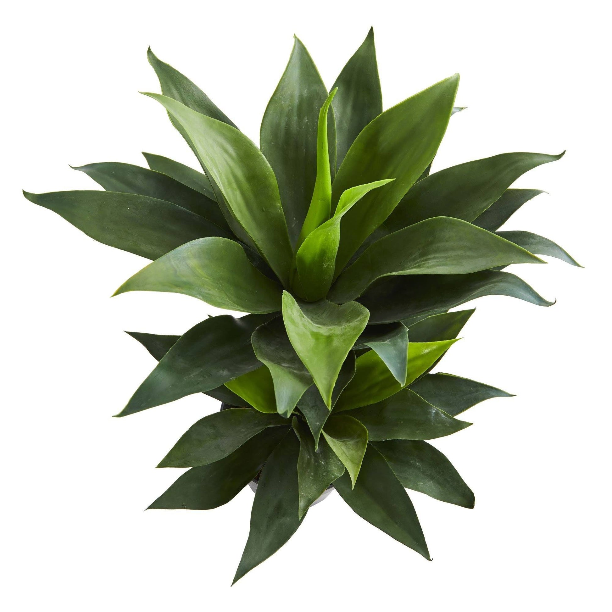 Short and tall trunks, both topped with overlapping, sharp green leaves are present in this double agave succulent artificial plant. With its bold green color, this 29-inch ornament will strongly accent a lightly-colored bookshelf or mantelpiece. Be sure to pair it with picture frames or your collection of books for a complete look.