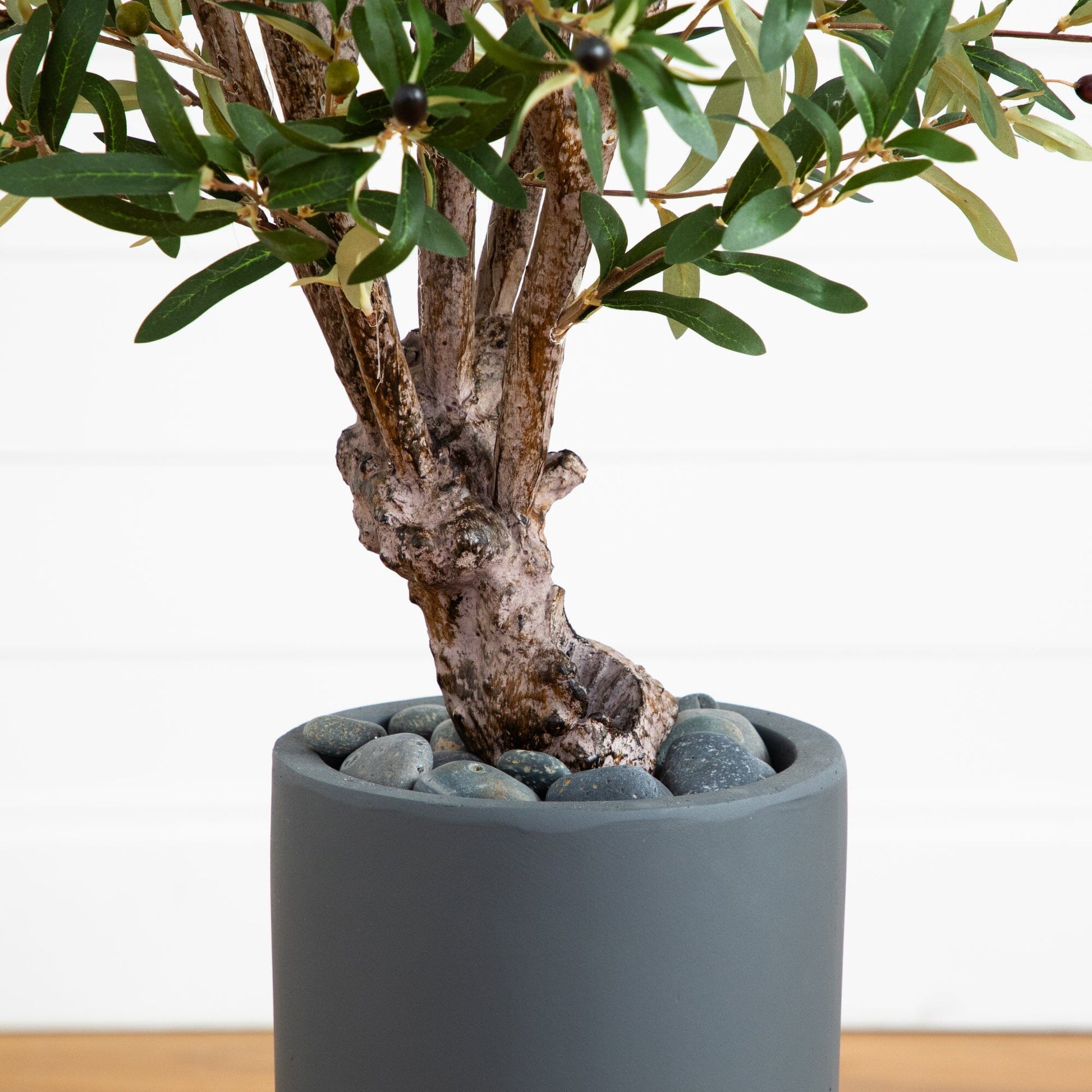 Enjoy the stunning realism of this faux olive tree in any room in your house. Classic mediterranean look combined with a minimalist gray cylinder planter will make this one of your favorite additions. Comes with gray river rock.