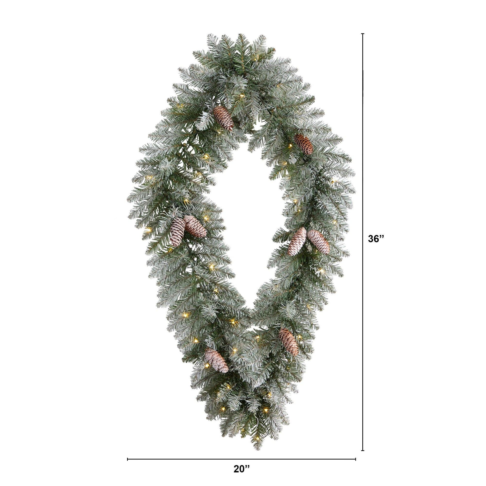 3' Holiday Christmas Geometric Diamond Frosted Wreath with Pinecones and 50 Warm White LED Lights
