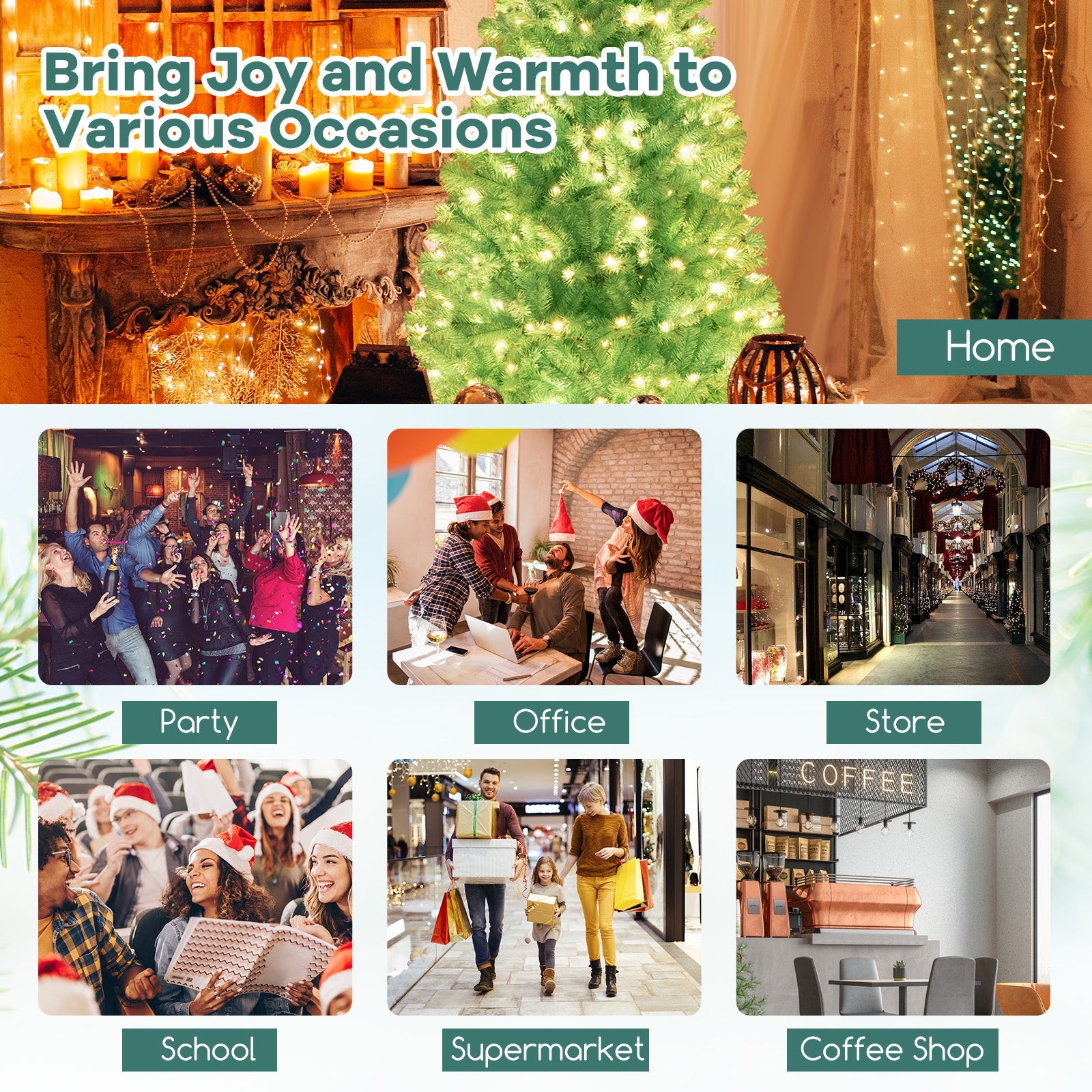 ● Boasts 758/1040 full-bodied branch tips for a more natural appearance● The unique blue leaves create a serene and enchanting atmosphere● Pre-strung with bright warm-white LED lights to brighten up your Christmas● The tree adopts a convenient 3-section design easy to set up and take down● The hinged branches automatically spread out saving time and energy● Includes 2 pairs of gloves to protect your hands when installing the tree● Features a pre-assembled screw no need for hole alignment easy to secure ● Adopts premium PVC leaves flame-retardant odorless and long-lasting● Adopts a crossed metal base provide strong support not easy to wobble● The bottom of the metal base is equipped with anti-slip footpads for floor protection ● Bring joy and warmth to various occasions: home office store school supermarket coffee shop party etc