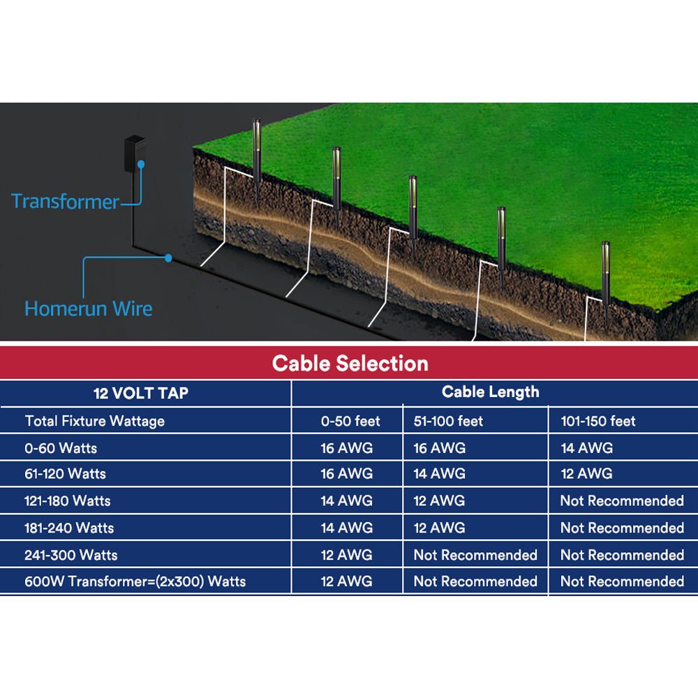 All low voltage outdoor lights must be installed with a 12V Low Voltage Transformer and connections between lights must be secured using Grease Filled Wire Nuts (WN12) waterproof connectors.
