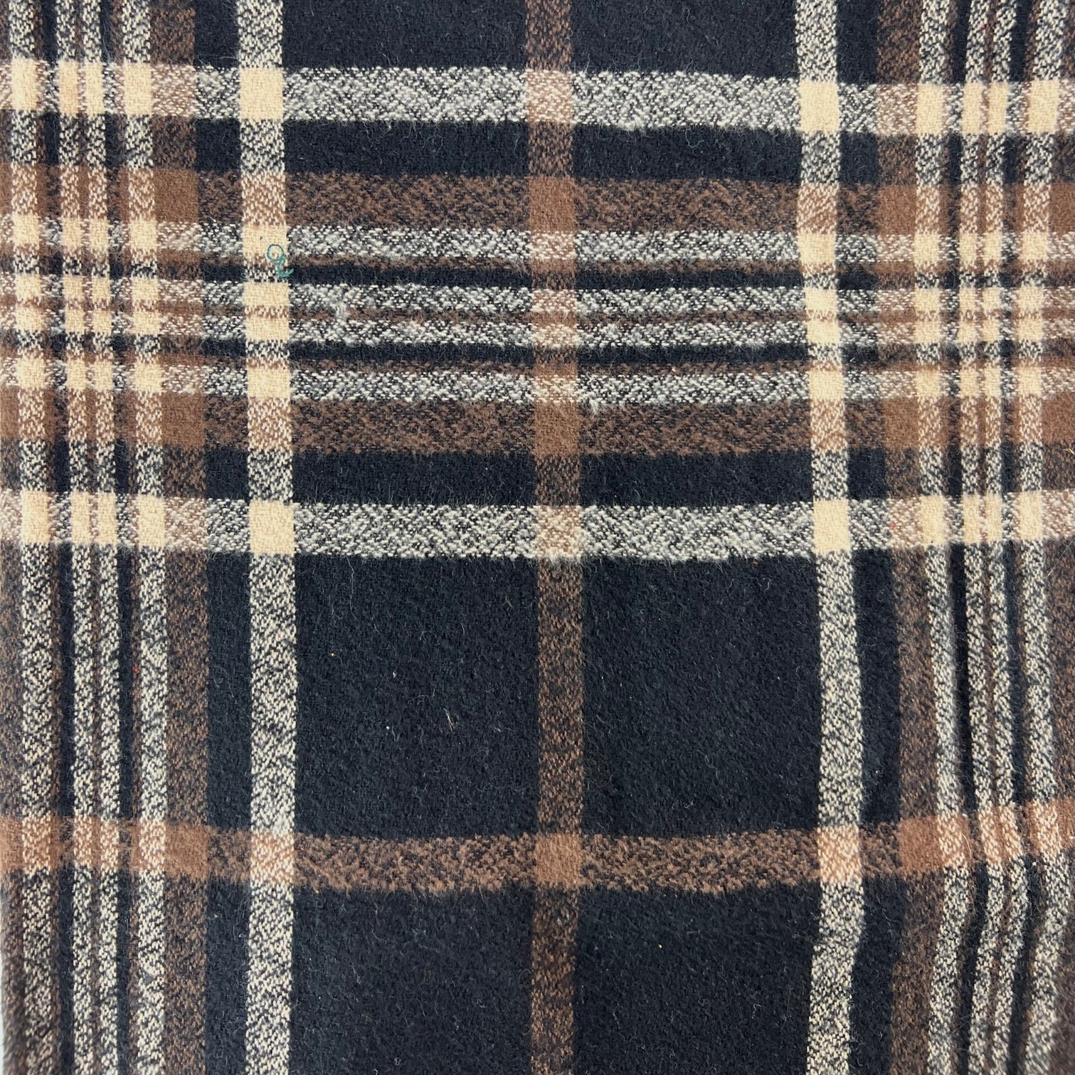 A rich deep tone flannel plaid of Black, Milk Chocolate and Creamy White in a melange plaid design.
