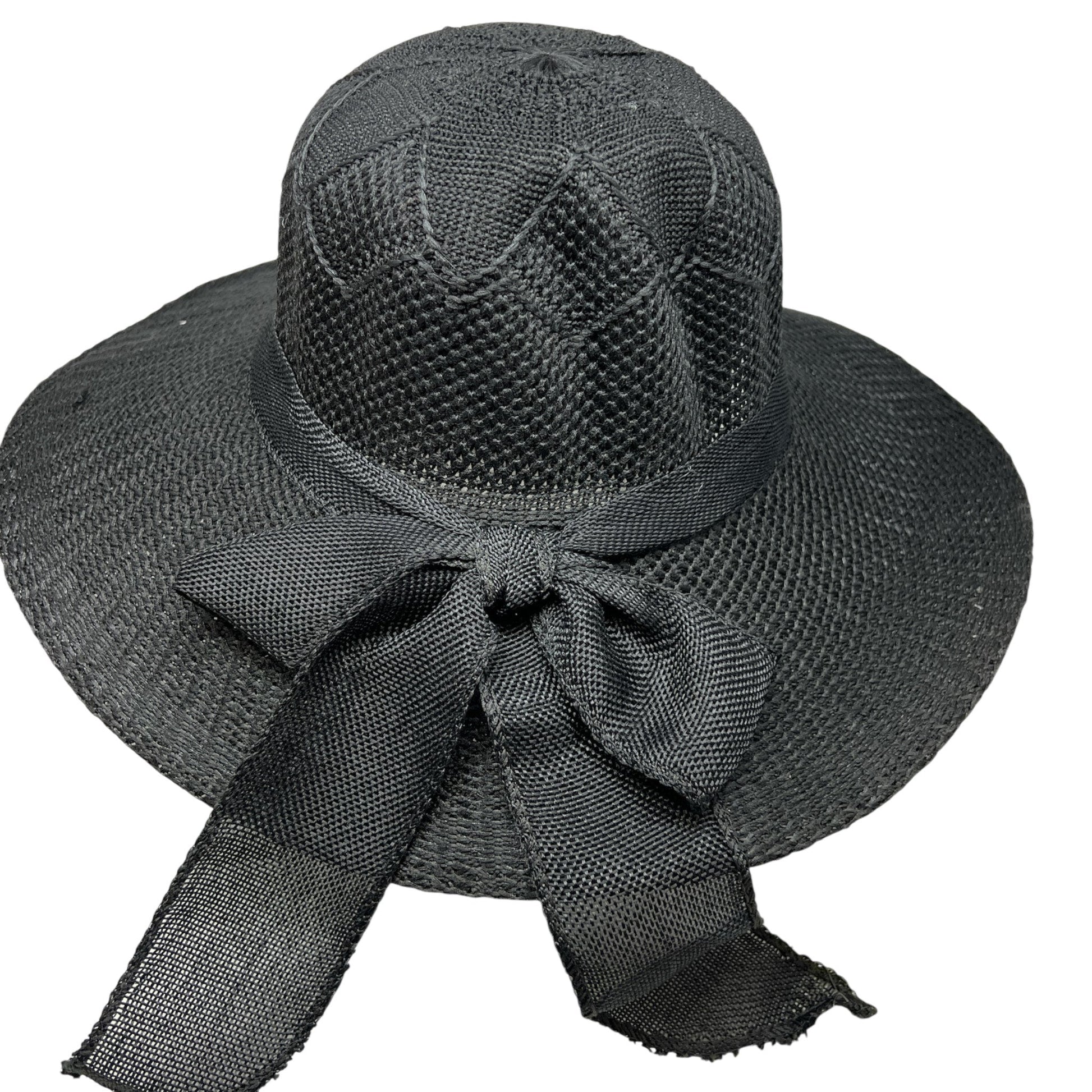 Burlap Ribbon Chiffon Crochet Woven Derby Sun Hat -Black