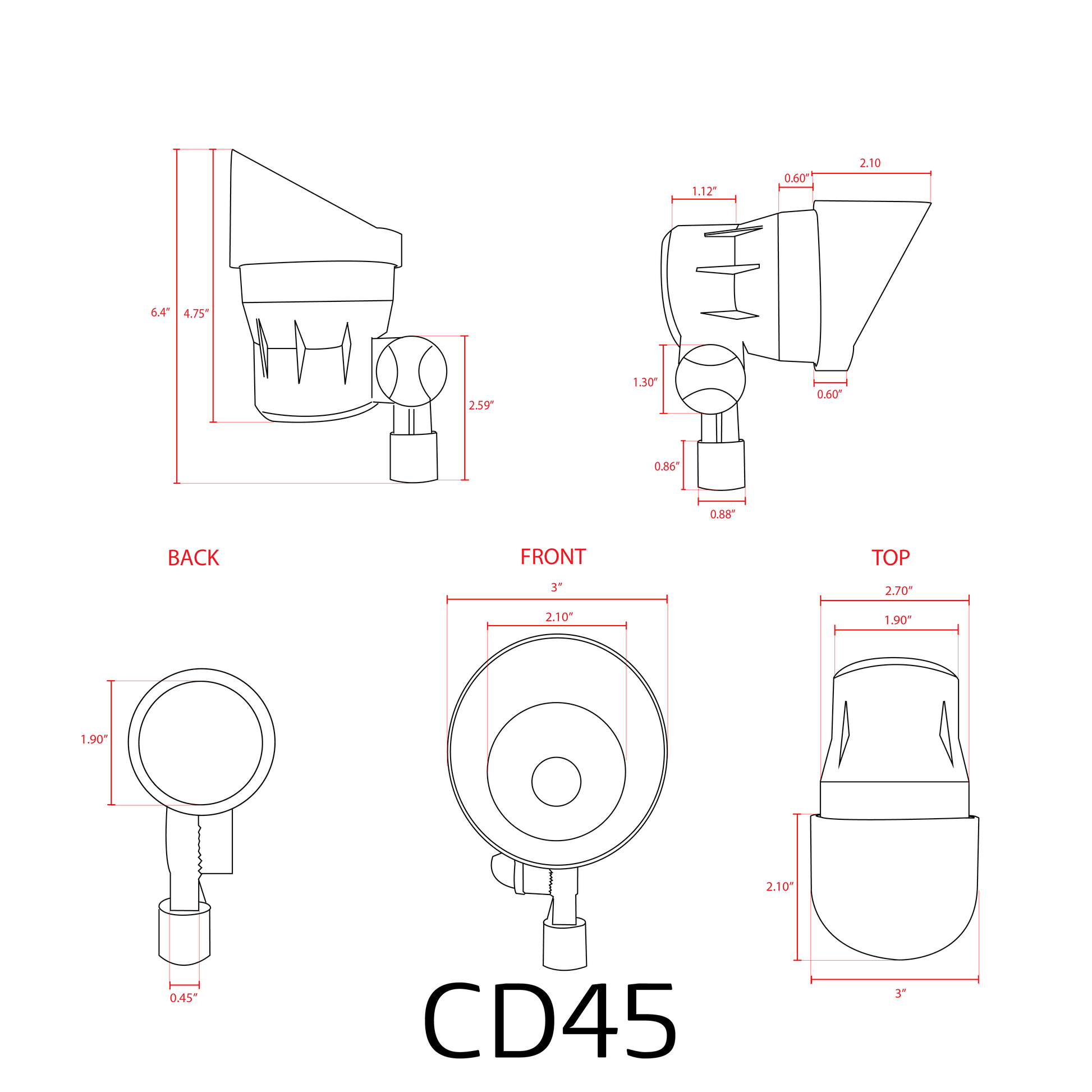 CD45 low voltage black adjustable LED directional spotlight with built-in aluminum spike stake provides you with effortless security and illumination to your outdoor landscape lighting space. This novelty mono point spotlight features flexible directional lighting, solid one-piece construction of durability and lifetime of beauty. Its body is made up of heavy-duty cast aluminum material with a black finish. It is tough enough for any adverse condition.