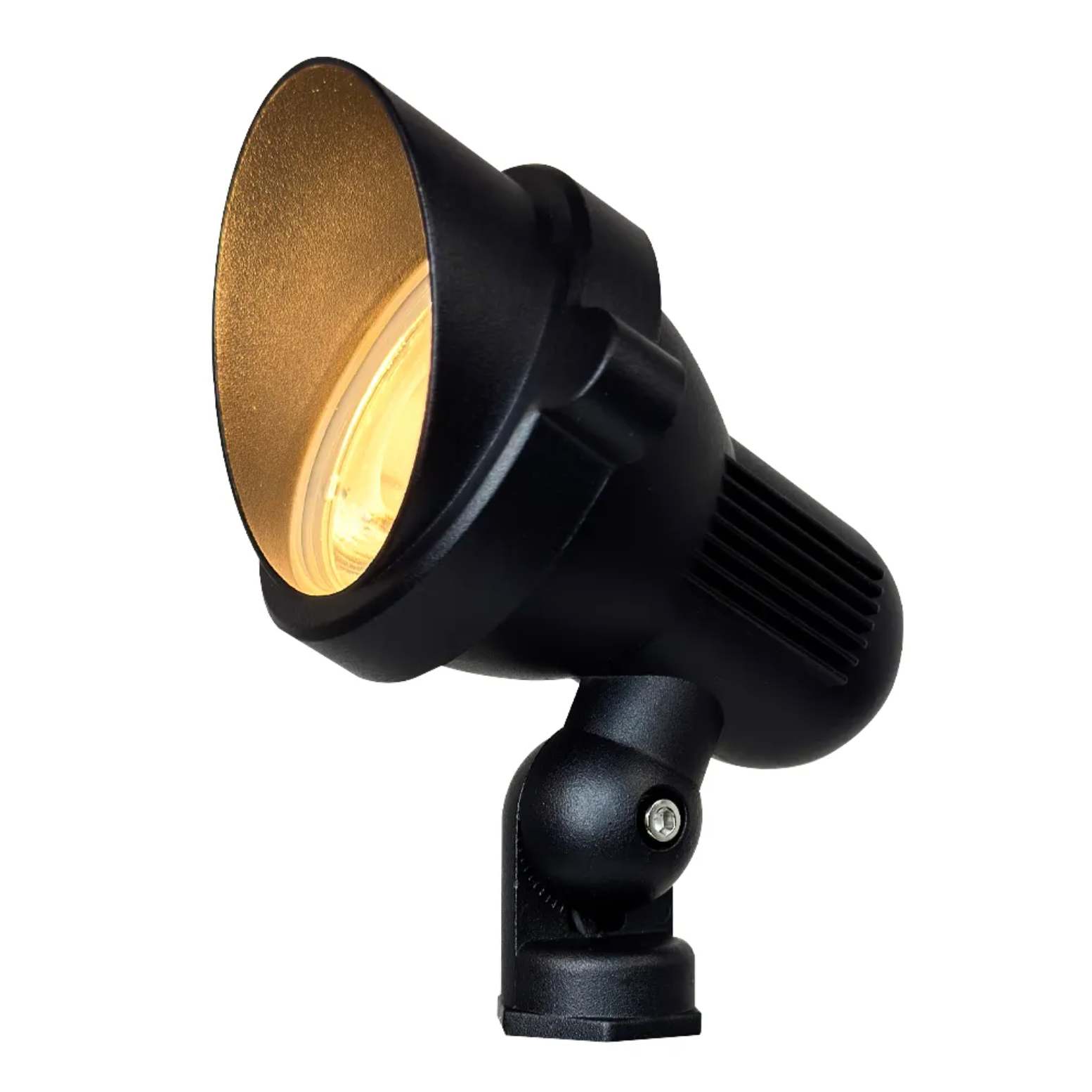 Lighting up your outdoor excellently can be done using this very potential low voltage directional spotlight. Built-in 9W COB LED ignites your outdoor with 3000K warm white color temperature and 630 Lumens giving you a pleasant and ministerial atmosphere outdoors. This ground LED spotlight is made of heavy-duty cast aluminum and a black color finish. It is long-lasting and provides the best worship guaranteed.