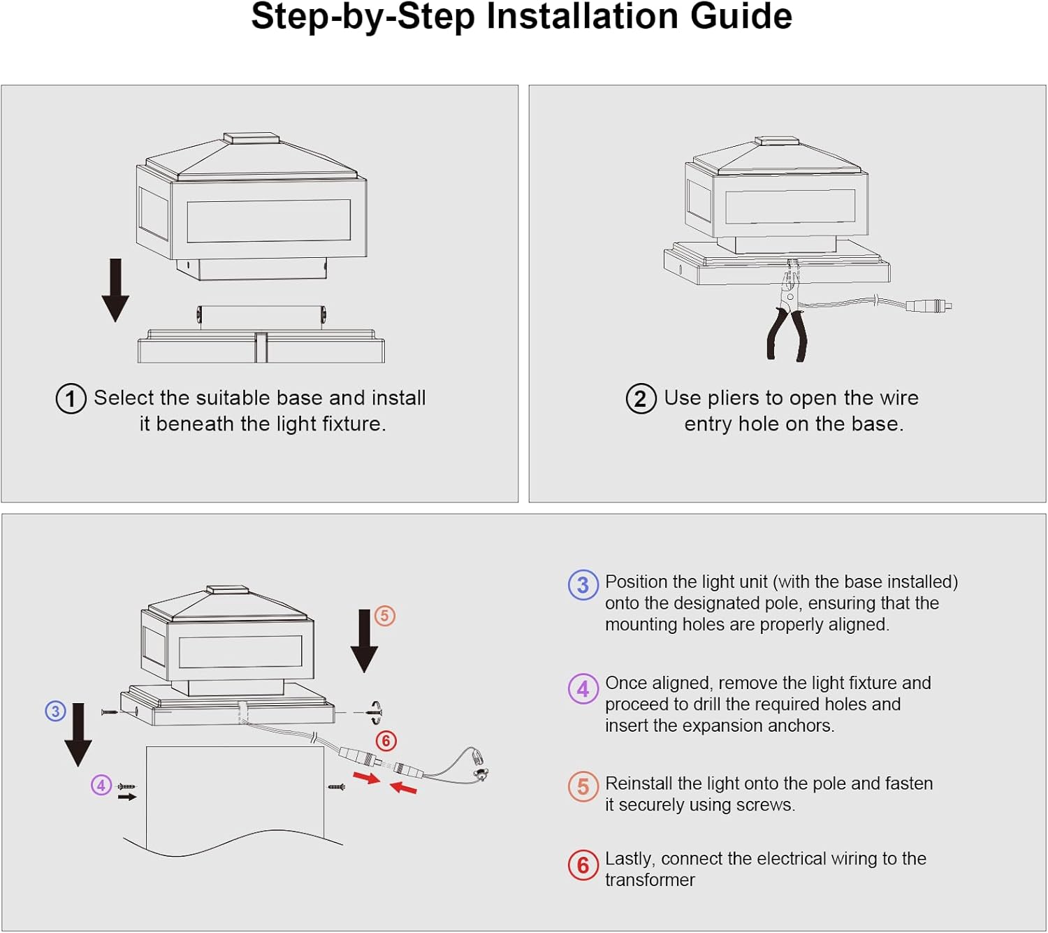 These outdoor post lights come with two sizes of mounting bases—3.7" and 5.7"—ensuring compatibility with various fixtures and posts. This flexibility allows for seamless integration with any outdoor decor.